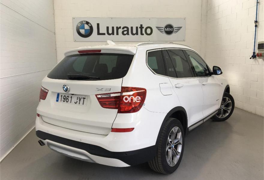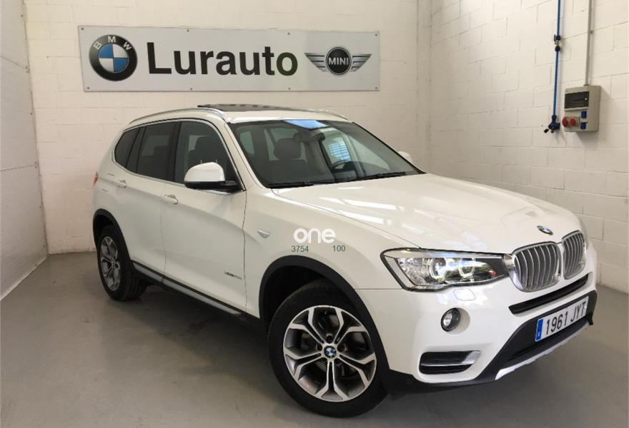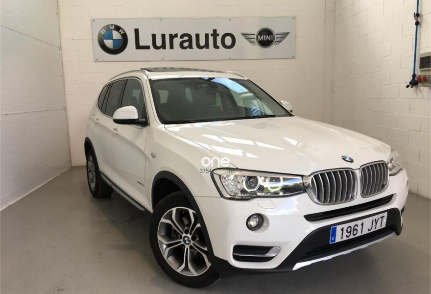 BMW X3, Diesel, año 2017, 22400 kilómetros, color Blanco , precio 42900€. 18" Llanta al.ligera radios en Y (607),Función automática Start/Stop,Regeneración de la energía de frenado,Cambio automático con levas de cambio,Servotronic,Volante multifunción,Volante deportivo de cuero,Cámara para marcha atrás,Neumáticos con funcionamiento en caso de avería (runflat),Techo de cristal panorámico,Acristalamiento de protección solar,Espejos eléctricos plegables con función antideslumbramiento,Retrovisor interior con ajuste automático antideslumbramiento,Sistema de carga variable,Calefacción de los asientos delanteros,Asistente para luz de carretera,Lavado de faros,Control de distancia en aparcamiento (PDC),Sensor de lluvia, incluyendo accionamiento automático de las luces de cruce, Faros xenón para función de la luz de cruce y de carretera,Climatizador,Control de crucero con función de freno,Llamada de Emergencia Inteligente,Disposit. manos libres con interfaz USB,Sistema de navegación Business,Cierre centralizado automático...Garantia oficial BMW hasta 04/2020..