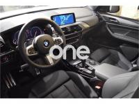 BMW X3, Diesel, año 2018, 4000 kilómetros, color Blanco (Alpinweiss) , precio 67500€. Faros antiniebla de LED,Paquete Comfort,Paquete Travel,Ajuste del respaldo de los asientos, parte trasera,Asientos deportivos para conductor y acompañante,Calefacción de los asientos delanteros,Combinación tela/cuero 'Vernasca' Schwarz/pespunteado de contraste Blau Schwarz,Molduras interiores Rhombicle con moldura de acentuación cromo de brillo perlado,Paquete de compartimentos,Reproductor de CD,Sistema de navegación Professional,Sistema de sonido surround Harman Kardon,Acabado M Sport,Caja de cambios Steptronic Sport,Acceso confort,Asistente de luz de carretera,Dispositivo de alarma,Luz de ambiente,Paquete aerodinámico M,Retrovisor interior, con ajuste automático anti-deslumbramiento,Techo de cristal panorámico,Volante M de cuero,20'', llantas de aleación ligera M de radios dobles (estilo 699 M), con neumáticos de diferentes dimensiones y funcionamiento en caso de avería,Acristalamiento de protección solar,Alpinweib (sólido),Cristales acústicos,Neumáticos con funcionamiento en caso de avería,Paquete de retrovisores interior y exteriores,Reglaje eléctrico de los asientos con memoria,Cuadro de instrumentos multifuncional,Suspensión deportiva M,Driving Assistant,Protección activa. BMW X3 30dA Pack M New Model