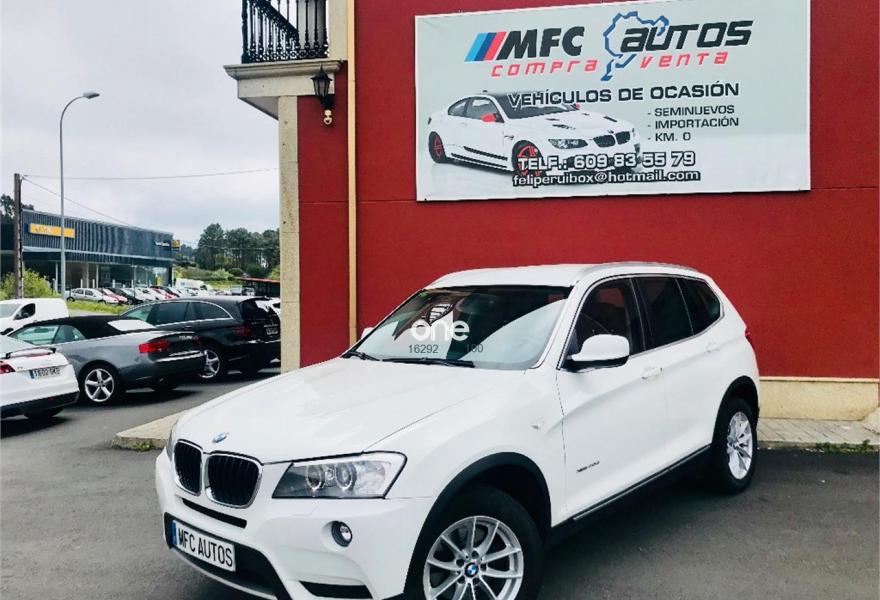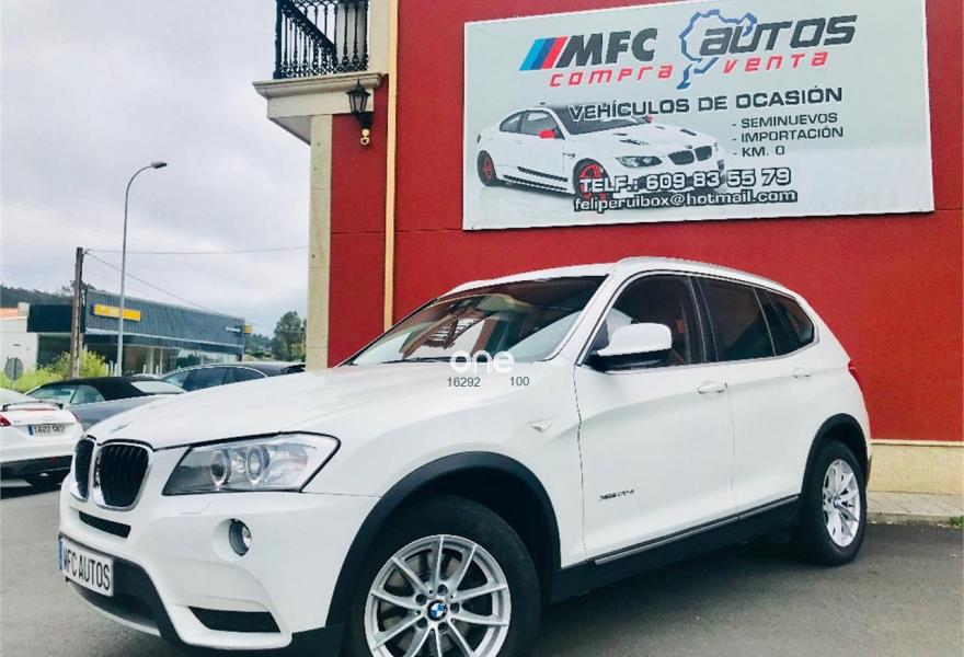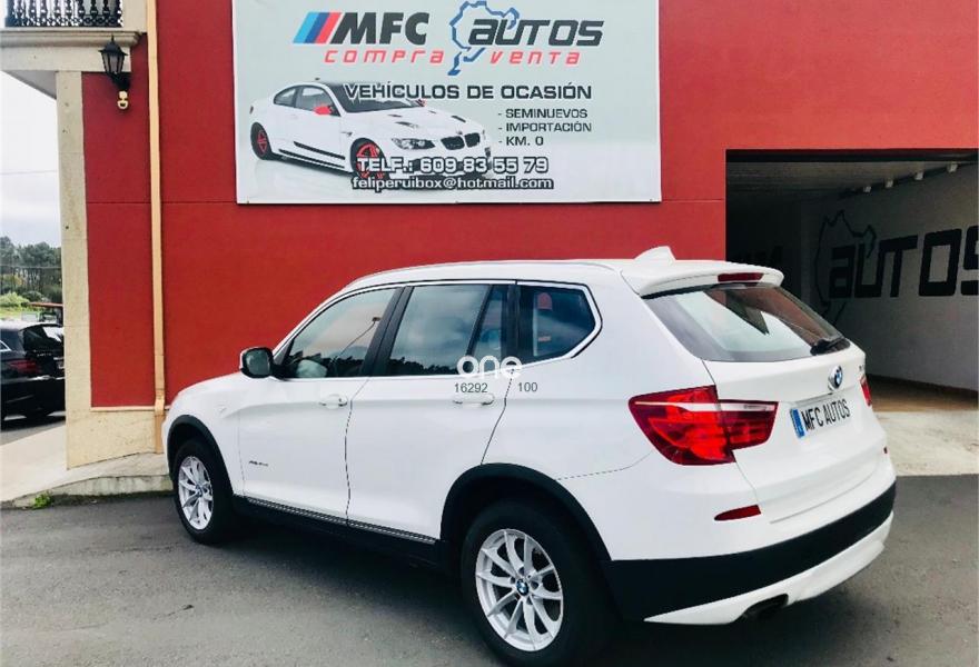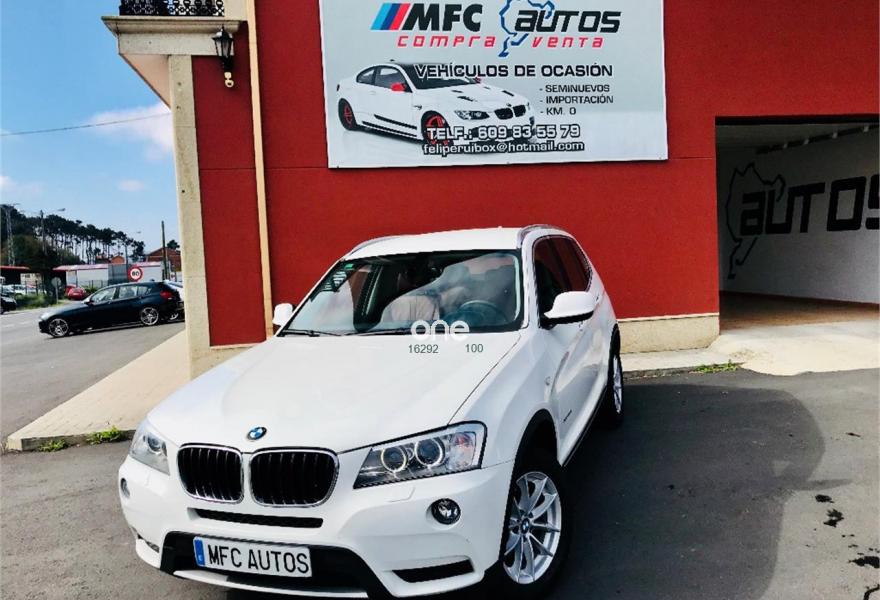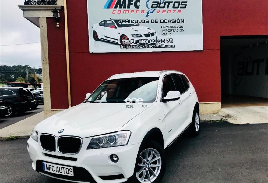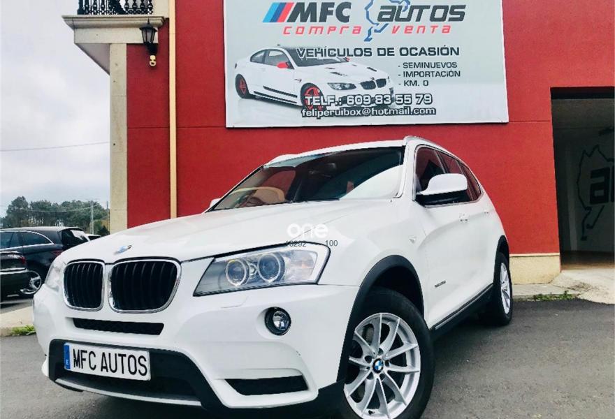 BMW X3, Diesel, año 2012, 199000 kilómetros, color Blanco , precio 16999€. Paquete deportivo M,Paquete Visibilidad,Performance Control,Paquete Comfort,Asientos deportivos para conductor y acompañante,Calefacción de los asientos delanteros,Embellecedores del tablero de instrumentos negro de brillo intenso,Guarnecido interior del techo BMW Individual antracita,Conexión para dispositivos Bluetooth y USB,Dispositivo manos libres con interfaz USB,Intercambiador DVD de 6 discos,Paquete de Comunicación Profesional,Sistema de navegación Professional,Sistema HiFi Professional,Sistema de altavoces HiFi,Accionamiento automático del portón trasero,Dispositivo de alarma,Cuero 'Nevada' Rotbraun,Espejos retrovisores interior y exteriores con ajuste automático anti-deslumbramiento,Lavado de faros,Paquete aerodinámico M,Paquete de iluminación,Persiana solar mecánica en las ventanillas laterales traseras,Retrovisor interior con ajuste automático anti-deslumbramiento,Sensor de lluvia,Shadow Line de brillo intenso BMW Individual,Volante M de cuero,18" Llantas de aleación ligera de radios en Y (estilo 308),Carriles longitudinales para la baca BMW Individual Shadow Line de brillo intenso,Línea Exterior BMW Individual Aluminium satinado,Reglaje eléctrico de los asientos con memoria,X Line,BMW Head-Up Display,Cámara para marcha atrás,Cámara para marcha atrás con Top View,Control de distancia en aparcamiento (PDC) delante y detrás,Desactivación del airbag del acompañante. BMW - X3 MODELO NUEVO X DRIVE