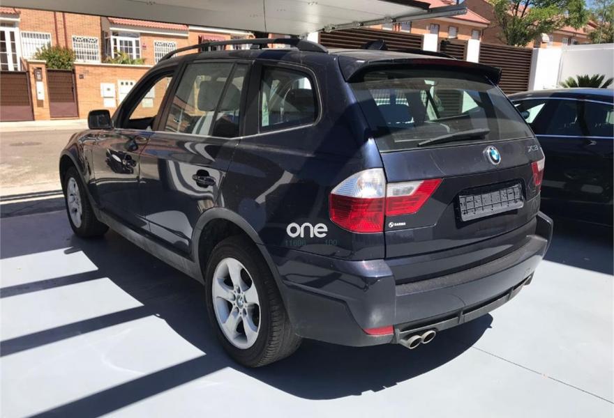 BMW X3, Diesel, año 2007, 174500 kilómetros, color Azul metalizado, precio 8650€. Tela 'Twill',Radio BMW Business CD,Dispositivo de alarma,Espejos int. y ext. antideslumbramiento,Paquete de iluminación,Llantas aleación M radios en Y (est.191),Airbags laterales traseros,Sistema fijación asiento infantil ISOFIX,Triángulo de emergencia c/equipo 1º aux.. Vehículo en perfecto estado de mecánica y carrocería, recién revisado, con todas las revisiones en Concesionario Oficial, asientos en tela beige muy cuidados, radio cd con salidas auxiliares, motor 3.0 con muy buenas prestaciones, llantas de aleación, tracción 4*4, climatizador bi-zona, muy bien cuidado y conservado..