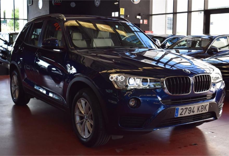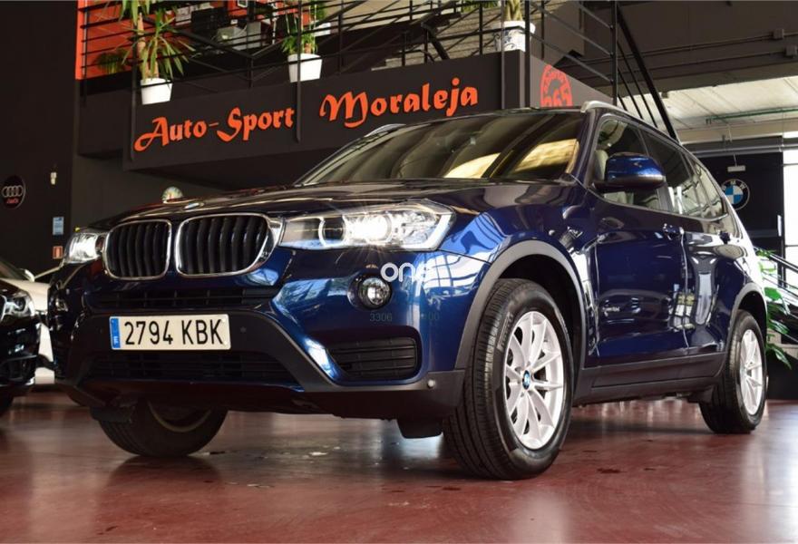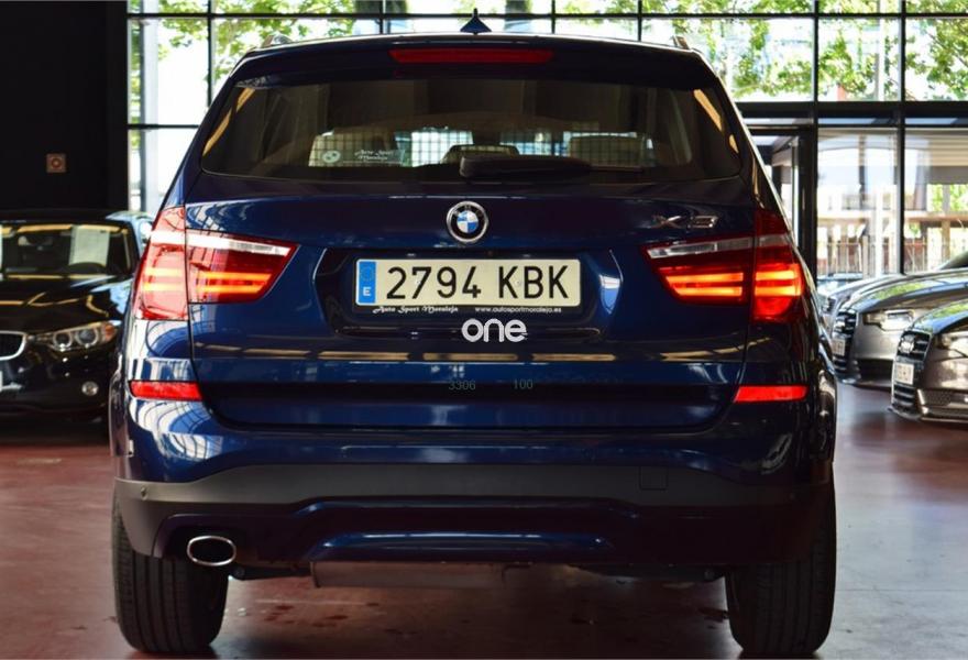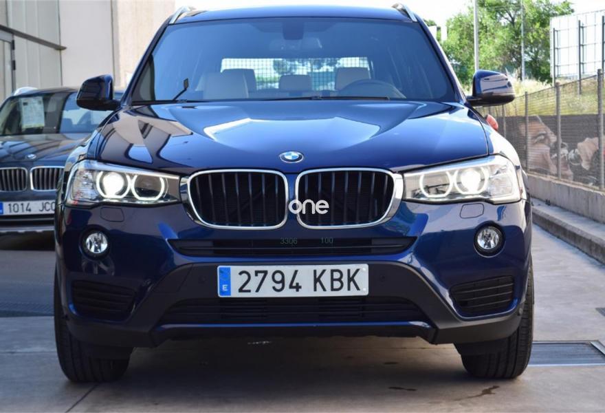 BMW X3, Diesel, año 2017, 25800 kilómetros, color Azul (Tiefseeblau) metalizado, precio 33900€. Calefacción de los asientos delanteros,Guarnecido interior del techo BMW Individual antracita,Paquete de compartimentos,Sistema de navegación Business,Accionamiento automático del portón trasero,Asistente de luz de carretera,Cuero 'Nevada' Oyster,Cuero 'Nevada' Schwarz,Faros xenón,Lavado de faros,Tiefseeblau (metalizado),Cambio automático,Control de distancia en aparcamiento (PDC) delante y detrás,Cámara para marcha atrás. *Llévatelo por 32.900€, financiando un mínimo de 10.000€ a partir 72 Meses. Vehículo Nacional de un único propietario. En el precio se incluye: IVA (Deducible), Transferencia y Garantía de un año, incluyendo la garantía oficial de la casa hasta junio de 2019. La Certificación de Kilómetros y que no ha sufrido golpes estructurales, queda reflejado en el Contrato. Todos nuestros vehículos disponen de un informe independiente y objetivo. // Ref. 3641931
