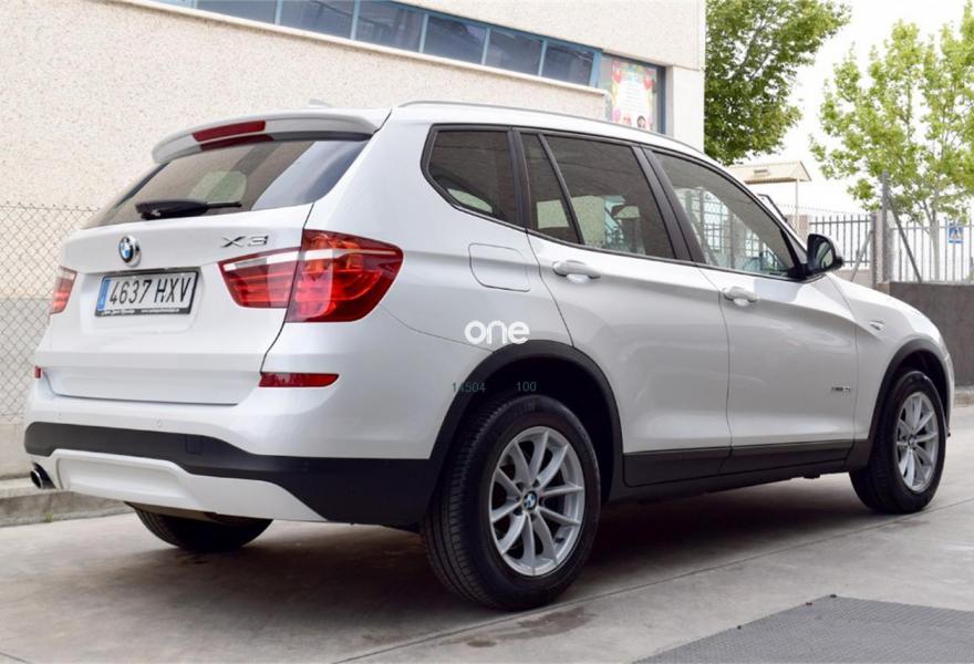BMW X3, Diesel, año 2014, 113800 kilómetros, color Blanco , precio 26900€. Sistema de navegación Business,Cambio automático,Faros xenón,Lavado de faros,17" Llantas de aleación ligera de radios en Y (estilo 305),Control dinámico de la suspensión,Control de distancia en aparcamiento (PDC) delante y detrás. *Llévatelo por 25.900€, financiando un mínimo de 10.000€ a partir 72 Meses. Vehículo Nacional de un único propietario. Última revisión en Concesionario Oficial BMW el 27/10/2017 a los 92.518kms. En el precio se incluye: IVA (Deducible), Transferencia y Garantía de un año. La Certificación de Kilómetros y que no ha sufrido golpes estructurales, queda reflejado en el Contrato. Todos nuestros vehículos disponen de un informe independiente y objetivo.