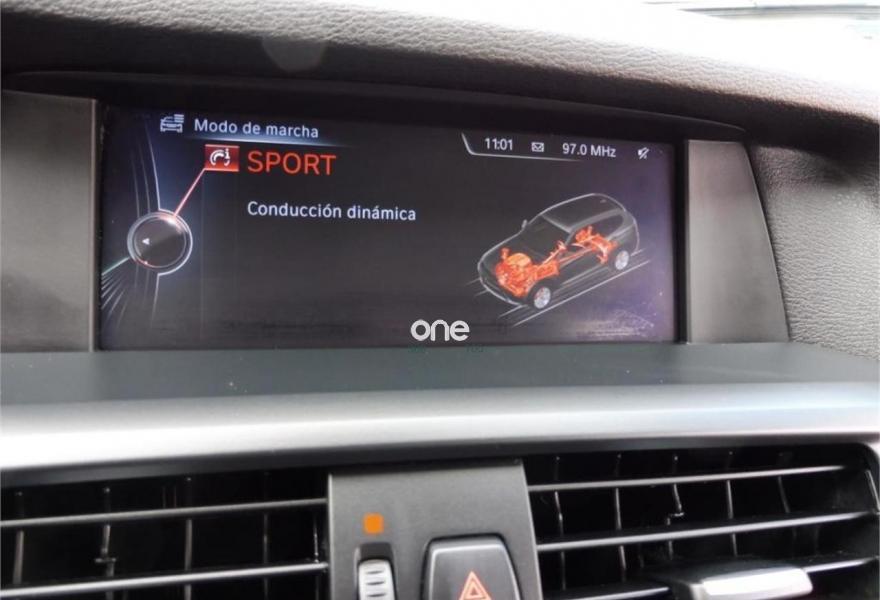 BMW X3, Diesel, año 2014, 127800 kilómetros, color Gris / Plata metalizado, precio 20999€. BMW X3 XDRIVE 2.0 D 184 CV !!!!! Vehículo nacional, kms garantizados y certificados por escrito.{[n]}{[n]}Revisiones en concesionario oficial BMW. {[n]}{[n]}EQUIPAMIENTO:{[n]}{[n]}*Pintura metalizada.{[n]}*Tapicería de cuero dakota negro. {[n]}*Cambio manual de 6 velocidades.{[n]}*Ordenador de a bordo.{[n]}*Volante multifunción.{[n]}*Sensor de luces y lluvia automático.{[n]}*Control de velocidad.{[n]}*Espejos eléctricos y abatibles.{[n]}*Faros bi-xenón.{[n]}*Luces adaptativas.{[n]}*Sistema de navegación profesional.{[n]}*Control de voz.{[n]}*Bluetooth.{[n]}*Sensor de aparcamiento delantero y trasero.{[n]}*Sistema Star- stop.{[n]}*Cámara marcha atrás.{[n]}*Llantas de aluminio en 17".{[n]}{[n]}Esta impecable tanto de interior como de exterior.{[n]}{[n]}En perfecto estado de mecánica.{[n]}{[n]}+++ PRECIO DE OFERTA SUJETO A FINANCIACION +++ Sino se financia consultar....{[n]}{[n]}++++ FINANCIAMOS HASTA EL 100% DEL VEHÍCULO SI LO DESEA ++++{[n]}{[n]}Se entrega con 12 MESES DE GARANTÍA.{[n]}{[n]}Esta incluido el CAMBIO DE NOMBRE,{[n]}{[n]}+++ MATRICULADO DICIEMBRE 2013 ++{[n]}.