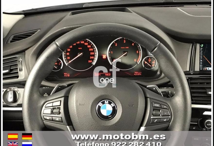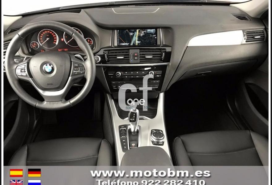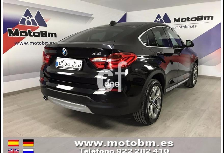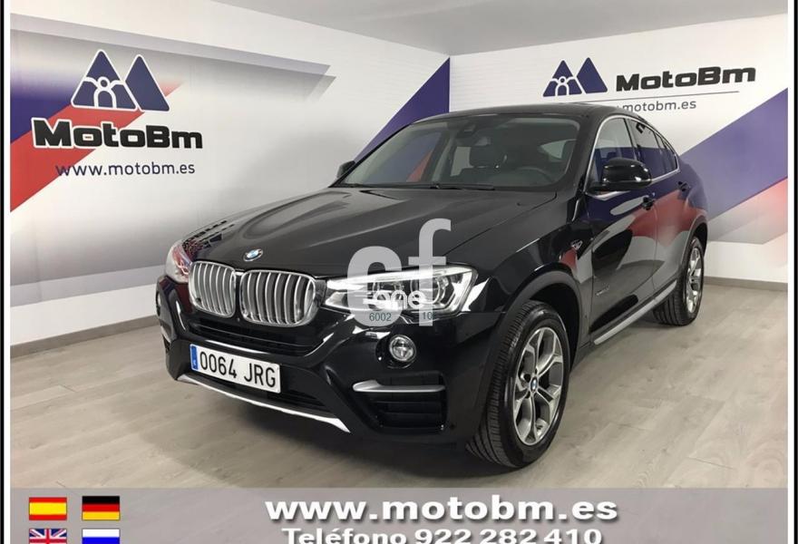 BMW X4, Diesel, año 2016, 9339 kilómetros, color Negro metalizado, precio 48900€. Paquete xLine, cambio automatico con levas, pintura metalizada, llantas 18", tapiceria cuero nevada en negro, calefaccion asientos delanteros, asientos electricos con memoria, driving assitance Plus, camara marcha atras, asistente aparcamiento con sourround View, advertencia cambio carril, sistema sonido Harman Kardon, techo corredizo, faros LED adaptativos, acceso confort, acristalamiento con proteccion solar, paquete iluminacion, Head up display, navegador profesional, telefonia con conexion ampliada, volante multifunción. Garantia oficial hasta 06.2019.