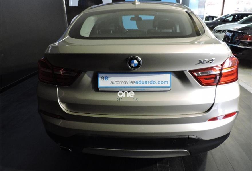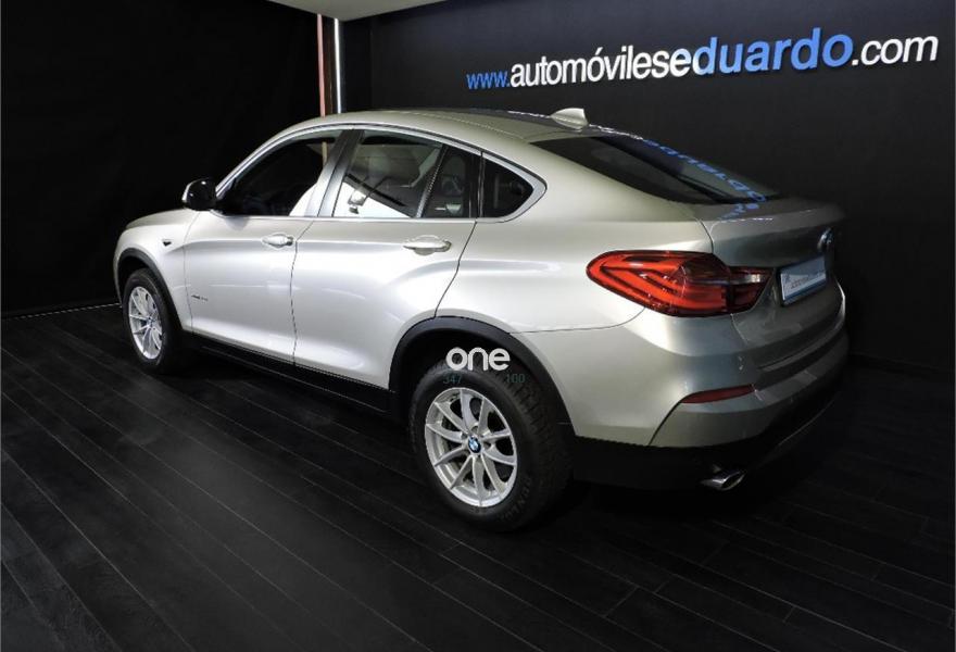 BMW X4, Diesel, año 2015, 97104 kilómetros, color Gris / Plata (Mineralsilber (metalizado)) metalizado, precio 34500€. Calefacción de los asientos traseros,Cuero 'Nevada' Schwarz Schwarz,Molduras interiores Aluminium con rectificado longitudinal fino,Sistema de navegación Business,Caja de cambios Steptronic con levas de cambio,Asistente de luz en carretera,Faros xenón,Faros LED autoadaptables,Dispositivo de alarma,Techo de cristal, eléctrico,Telefonía de confort con conexión ampliada para smartphone,Luces autoadaptables,Lavado de faros,17'', llantas de aleación ligera Streamline (estilo 306),Pintura metalizada,Mineralsilber Metallic,Asistente de aparcamiento. Climatizador bi-zona, Sensor de lluvia y luces,Sistema de navegación Business,Faros Xenón,Lavafaros,Tapizado en cuero Nevada Schwarz,Asientos delanteros térmicos,Alarma antirrobo,Regulador de velocidad con función de frenada,Control de distancia de aparcamiento (PDC) del + tras,Techo solar, Volante multifunción de cuero,8 velocidades automática, Tornillos antirrobo para llantas,Función automática Start/Stop,Llantas de aleación 17",Molduras interiores plata mate,Embellecedores salpicadero en negro brillante,Indicador presión neumáticos...