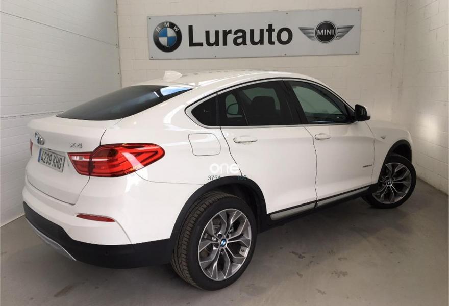 BMW X4, Diesel, año 2018, 9800 kilómetros, color Blanco metalizado, precio 49900€. 19" Llanta al.ligera radios en Y (608) neum.dif.dim.,Función automática Start/Stop,Regeneración de la energía de frenado,Cambio automático con levas de cambio,Volante multifunción,Neumáticos con funcionamiento en caso de avería (runflat),Cámara para marcha atrás,Techo solar eléctrico,Acristalamiento de protección solar,Paquete de retrovisores interior y exteriores,Paquete de compartimentos,Asientos deportivos para conductor y acompañante,Calefacción de los asientos delanteros,Asistente para luz de carretera,Lavado de faros,Control de distancia en aparcamiento (PDC),Sensor de lluvia, incluyendo accionamiento automático de las luces de cruce,Faros xenón para función de la luz de cruce y de carretera,Climatizador,Control de crucero con función de freno,Llamada de Emergencia Inteligente,Servicios Remotos,Telefonía confort con conexión ampliada para smartphone,Sistema de navegación Professional,Head-up display,Acabado xLine,Paquete de servicios ConnectedDrive, Speed Limit Info...