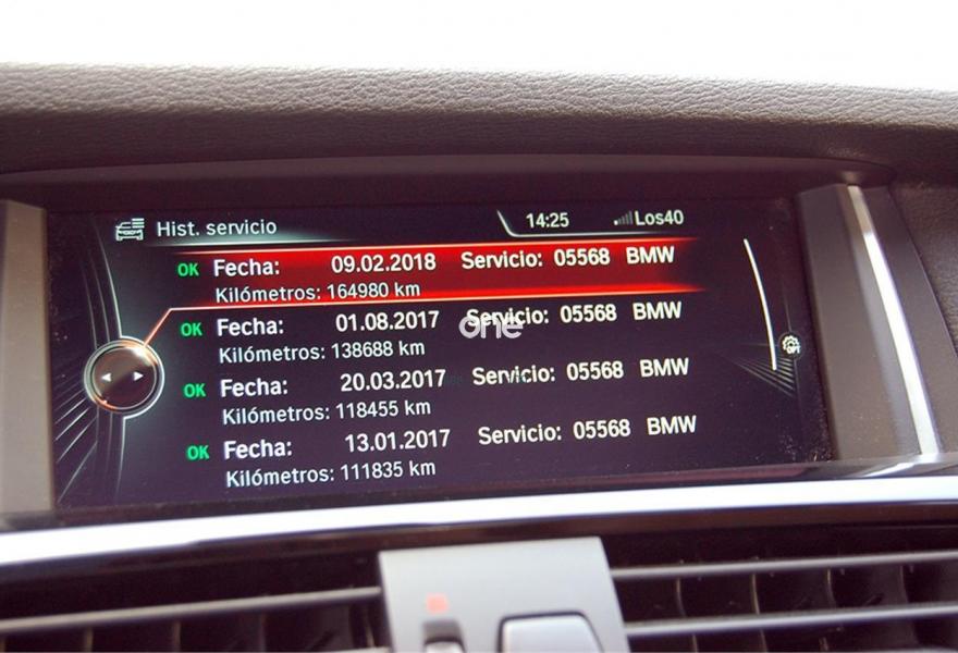 BMW X4, Diesel, año 2014, 159000 kilómetros, color Blanco (Alpinweiss) , precio 33990€. Paquete Deportivo M,Speed Limit Info,Asientos deportivos para conductor y acompañante,Calefacción de los asientos delanteros,Cuero 'Nevada' Sattelbraun Schwarz,Molduras interiores Aluminium con rectificado longitudinal fino,Guarnecido interior del techo BMW Individual antracita,Sistema de navegación Professional,Cuero Nevada Sattelbraun,Espejos retrovisores interior y exteriores con ajuste automático anti-deslumbramiento,Faros xenón,Paquete aerodinámico M,Lavado de faros,Paquete de iluminación,Techo de cristal, eléctrico,Telefonía de confort con conexión ampliada para smartphone,Volante M de cuero,Alpinweiß,19'', llantas de aleación ligera M de radios dobles (estilo 622 M) con neumáticos de diferentes dime,Control electrónico de la suspensión,Head-Up Display,Cámara para marcha atrás. 28.090 + 21% IVA = 33.990 € TODO Incluido. Precio especial sin recoger coche como parte de pago.