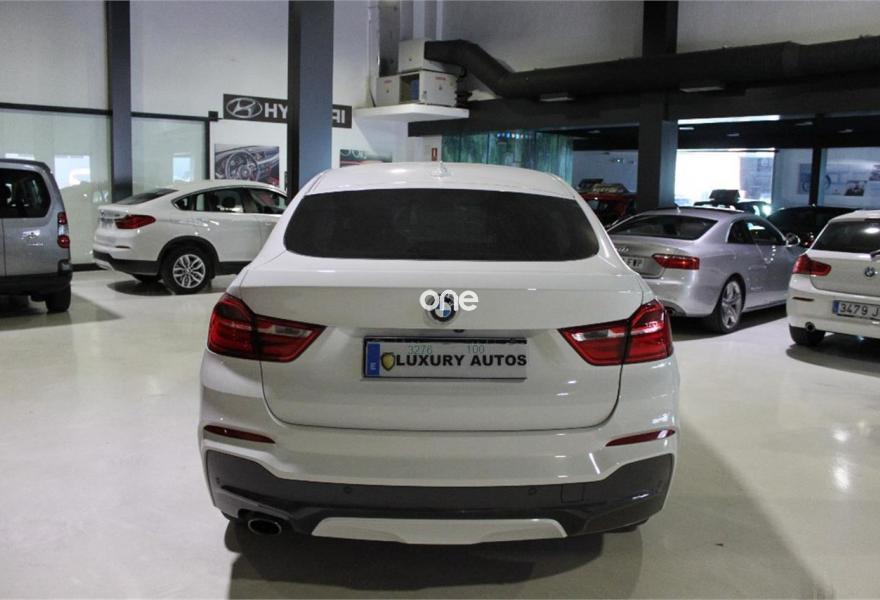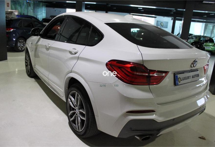 BMW X4, Diesel, año 2016, 72000 kilómetros, color Blanco metalizado, precio 37500€. Acabado M Sport,Faros antiniebla de LED,Paquete Deportivo M,Asientos deportivos para conductor y acompañante,Calefacción de los asientos delanteros,Sistema de sonido surround Harman Kardon,Sistema de navegación Professional,Volante M de cuero,Techo de cristal, eléctrico,Cámara para marcha atrás,Asistente de aparcamiento. Vehiculo impecable de interior y exterior,CERTIFICADO DE KILOMETROS Y DE NO SINIESTRALIDAD-LLAVES-HISTORIAL,GARANTIA,led adaptativo,luz de dia,llantas,antinieblas,cristales tintados,isofix,techo electricos y abatible,piel,paquete de iluminacion,PAQUETE M,espejos electricos-plegables-calefactables-antideslumbramiento,asientos deportivos-electricos-calefactables,volante multifuncion con levas,control de velocidad,clima,ordenador de abordo,STAR/STOP.KEY-LEST-GO,boton SOS,reposabrazos delantero,cristales tintados,radio CDmultifuncion-navegacion-etc.,SONIDO harman/kardon,porton trasero automatico,sensor de lluvia-luces-aparcamiento con camara ,se entrega revisado y transferido con un año de garantia se acepta vehiculo como parte de pago,salvo error u omision(Luxury autos pum).