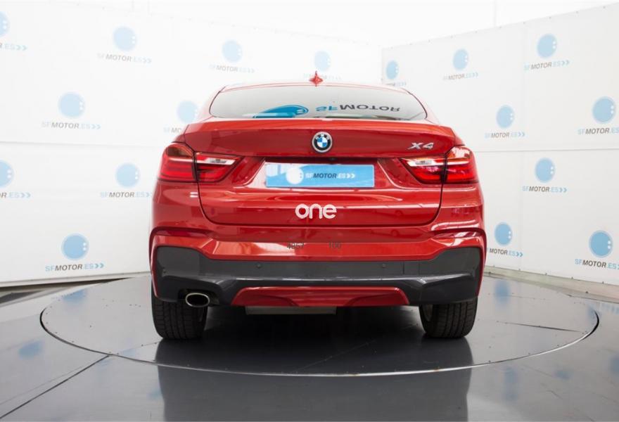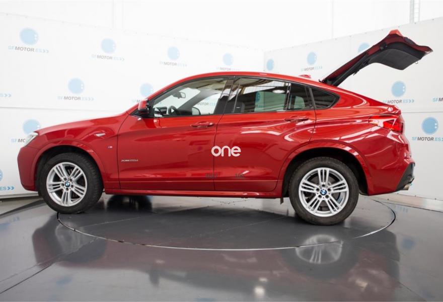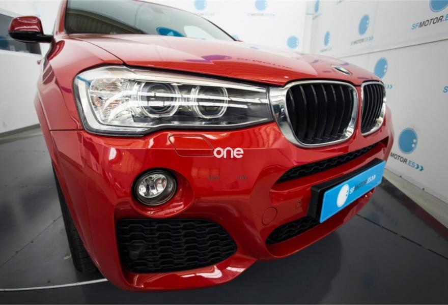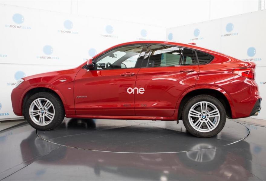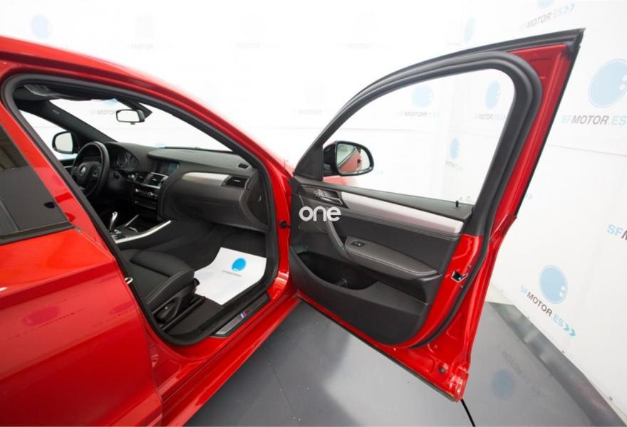 BMW X4, Diesel, año 2015, 37000 kilómetros, color Rojo (** GARANTÍA TOTAL e HISTORIAL DE MANTENIMIENTO **) metalizado, precio 36900€. Paquete Deportivo M,Paquete de servicios ConnectedDrive,Calefacción de los asientos delanteros,Asientos deportivos para conductor y acompañante,Molduras interiores Aluminium con rectificado longitudinal fino,Sistema de navegación Business,Caja de cambios Steptronic con levas de cambio,Acceso confort,Faros xenón,Volante M de cuero,Paquete de iluminación,Paquete aerodinámico M,Lavado de faros,Pintura metalizada,18'', llantas de aleación ligera M de radios en estrella (estilo 368 M),Cámara para marcha atrás,Asistente de aparcamiento,Driving Assistant,Cuero 'Nevada' Schwarz Schwarz,Sistema de navegación Professional,Cuero Nevada Schwarz,Servicios ConnectedDrive,Telefonía de confort con conexión ampliada para smartphone,Melbourne Rot (metalizado),Suspensión deportiva. BMW X4 20d xDrive Pack M 190cv Steptronic - Matriculación Junio 2015 – 37.000km