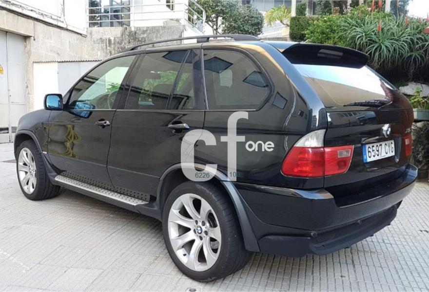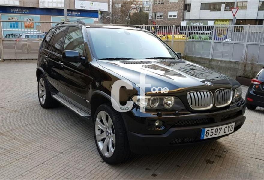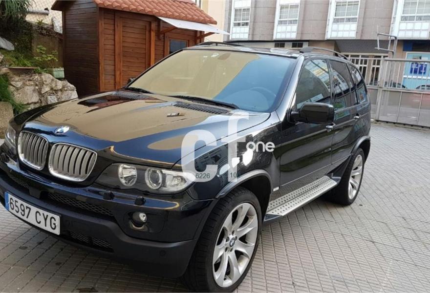 BMW X5, Diesel, año 2004, 98000 kilómetros, color Negro metalizado, precio 10900€. Alfombrillas de velours,Asientos deportivos delanteros 3.0d,Asientos deportivos delanteros 3.0d,Bolsa para esquíes,Calefacción asientos delanteros,Cuero Individual Walknappa ampliado,Reg. eléctrica respaldo asiento trasero,Soporte lumbar asientos delanteros,Tapicería cuero exclusivo "Walknappa",BMW Individual DVD (3.0d),Intercambiador BMW de 6 CD,Navegación Professional y ordenador 3.0,Ordenador de a bordo alfanumérico,Porta CD,Prep. teléfono móvil tecn. Bluetooth,Preparación para teléfono red GSM,Radio BMW Professional,Reproductor de CD,Sistema de altavoces Hi-Fi,Asientos comfort regulac. eléctrica 3.0d,Dispositivo de alarma,Franja verde en el parabrisas,Intermitentes blancos (Individual),Preinstalación de intercambiador 6 CD,Reg. eléctrico asientos (c/memoria) 3.0d,Reg. eléctrico asientos (c/memoria) 3.0d,Retrovisor interior anti-deslumbramiento,Retrovisores ajuste antideslumbrante,Sensor lluvia y accionam. aut. luz cruce,Techo panorámico de cristal,Estribos de aluminio,Llantas aleación radios en V (168) 3.0d,Pintura metalizada,Acabado deportivo 3.0d,Suspensión deportiva. Vehículo todoterreno 4x4 automático en perfecto estado tanto exterior como interior, 218 cv, pocos kilómetros, asientos deportivos eléctricos de cuero negro, techo panorámico eléctrico, sistema de navegación, bluetooth, llanas originales BMW en 19 pulgadas, etc. xacobeospor.