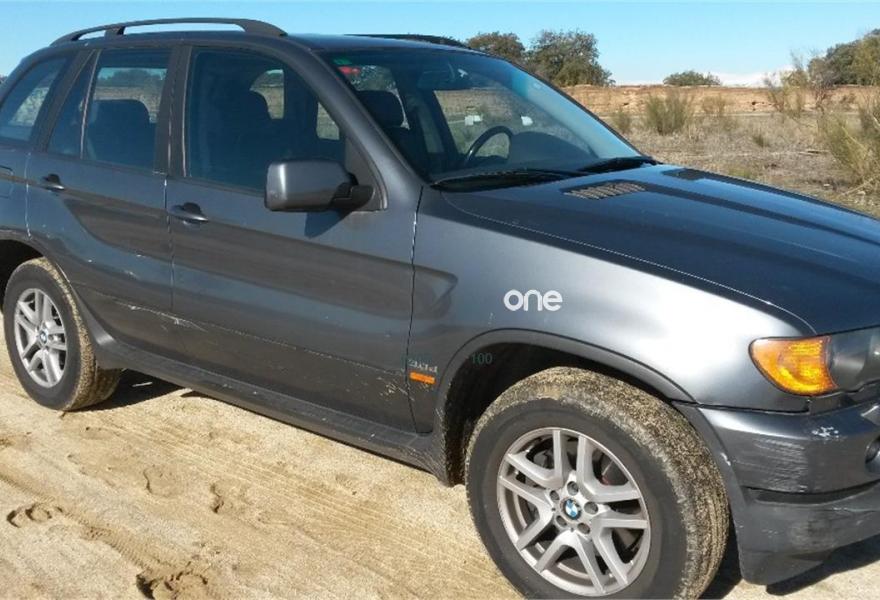 BMW X5, Diesel, año 2001, 250000 kilómetros, color Gris / Plata (cuarzo) metalizado, precio 5599€. 4x4 Automático, 3.0 diesel de 184cv, con techo cristal, asientos eléctricos regulables, bola de remolque. Muy bien cuidado.