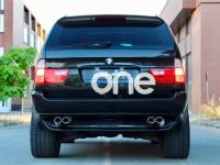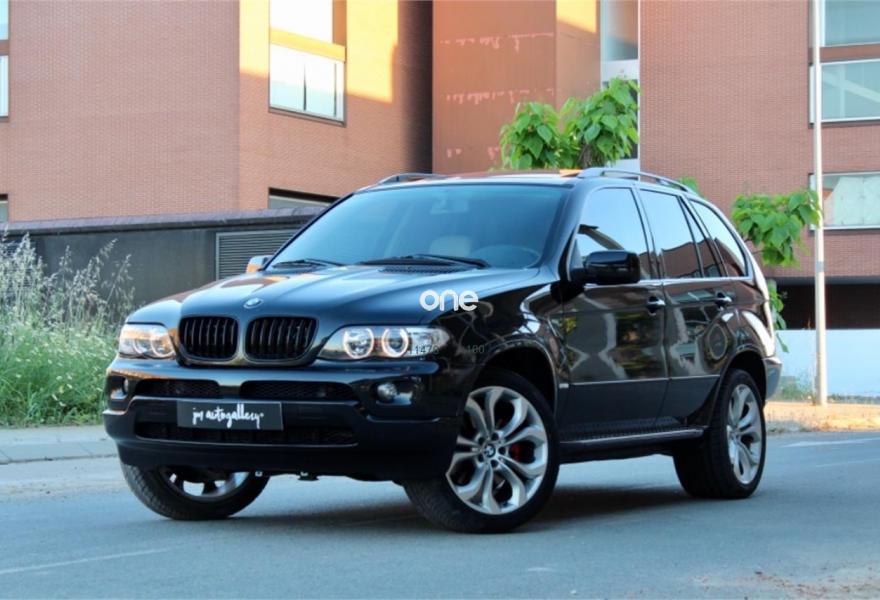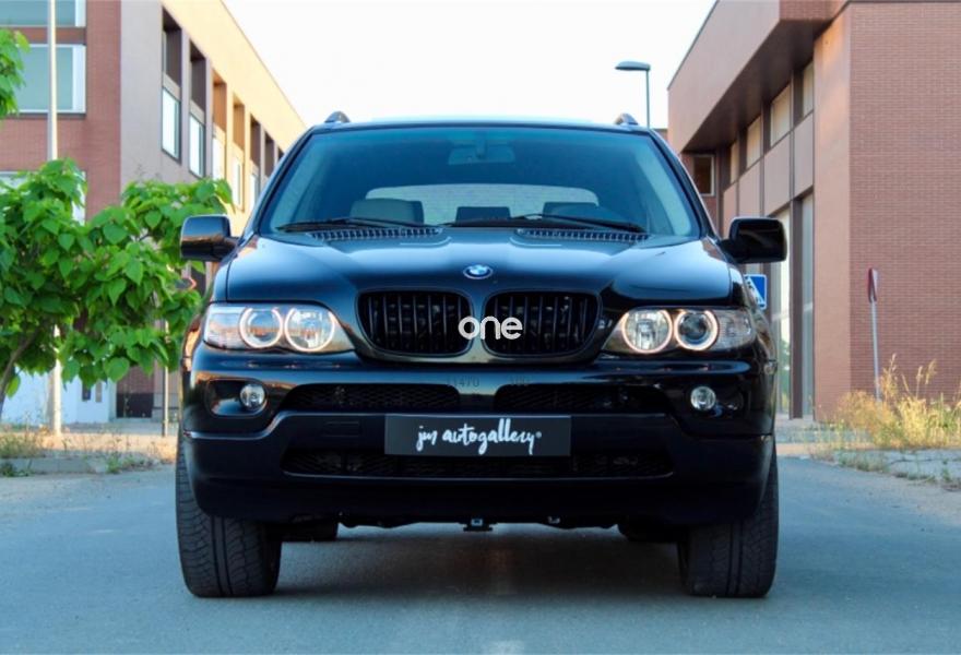 BMW X5, Diesel, año 2002, 177000 kilómetros, color Negro metalizado, precio 7990€. Ajuste eléct. respaldo asiento trasero,Alfombrillas de velours,Apoyabrazos delantero,Asientos 'Confort' reg. eléctrica 3.0d,Calefacción asientos delanteros,Revestimiento de madera Popular clara,Ordenador de a bordo alfanumérico,Aire acondicionado para la parte trasera,Intermitentes blancos (Individual),Piso del maletero extraible,Retrovisores anti-deslumbramiento,Supresión del anagrama de modelo,Techo eléctrico corredizo de cristal,Estribos de aluminio,Línea titanio exterior,Manecillas de puertas color carrocería,Pintura metalizada,Transmisión automática 3.0d,Airbag laterales y de cabeza traseros,Control de distancia en aparcamiento,Triángulo de emergencia y botiquín. BMW X5 3.0D 184cv