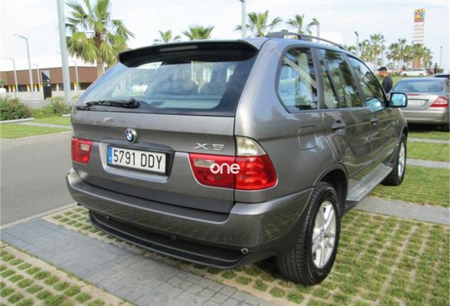 BMW X5, Diesel, año 2005, 253000 kilómetros, color Gris / Plata (impecable estado) metalizado, precio 6990€. Alfombrillas de velours,Apoyabrazos delantero,Tapicería cuero Dakota 3.0i/3.0d,Porta CD,Radio BMW Professional,Pintura metalizada,Acabado deportivo 3.0d. En Venta impecable BMW X5 3.0D 218CV AUTOMATICO AÑO 2004 CON 250.000KM CERTIFICADOS POR ESCRITO. Vehículo muy equipado (techo solar, cuero negro impecable, navegador GPS, sensores aparcamiento, xenón, volante multf. Etc. etc. Impecable estado. Revisiones y mantenimientos al día, ITV hasta 2018.4 ruedas Michelin perfectas. No busques más, no hay otro igual.
