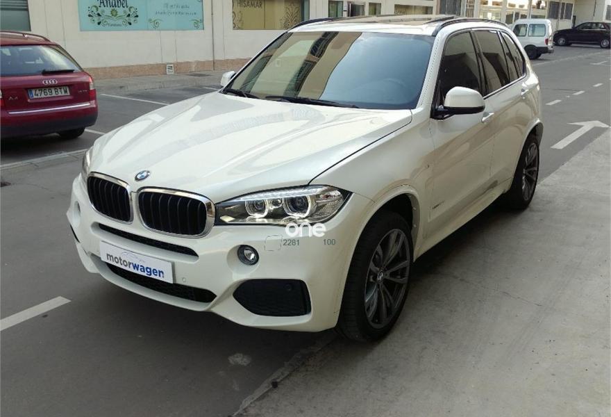 BMW X5, Diesel, año 2015, 119900 kilómetros, color Blanco , precio 45900€. Paquete Confort,Calefacción de los asientos delanteros,Cuero Dakota Schwarz/Schwarz,Molduras interiores Aluminium Hexagon,Reglaje eléctrico de los asientos, con memoria en el del conductor,Soporte lumbar en los asientos delanteros,Sistema de altavoces HiFi,Sistema de navegación Professional,Acceso confort,Asientos de confort delanteros, con reglaje eléctrico,Asistente de luz de carretera,Paquete aerodinámico M,Paquete de iluminación,Paquete deportivo M,Shadow Line de brillo intenso BMW Individual,Sistema automático Softclose para las puertas,Techo de cristal panorámico,Volante M de cuero,Alpinweib (sólido),Acristalamiento de protección solar,20'', llantas de aleación ligera M de radios dobles (estilo 469 M) con neumáticos de diferentes dimensiones,Cámara para marcha atrás,Asistente de aparcamiento,Enganche de remolque. Espectacular BMW X5 4.0d 313cv pack M, Nacional, unico dueño, muy cuidado en impecable estado tanto interior como exterior sin el mas minimo arañazo o desperfecto, aparenta la mitad de kilómetros, final 2014.
