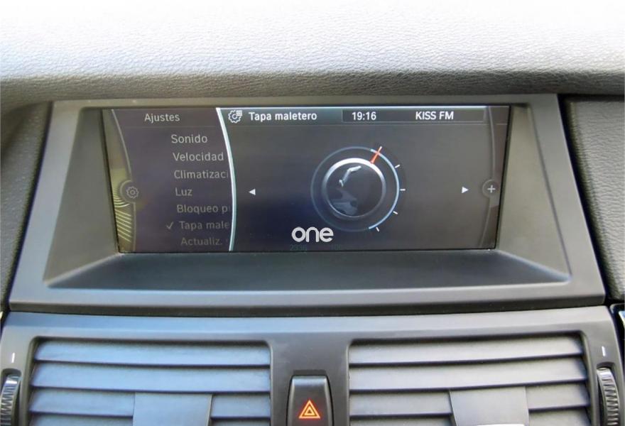 BMW X5, Diesel, año 2013, 90000 kilómetros, color Negro metalizado, precio 29600€. Paquete deportivo,Speed Limit Info,Alfombrillas de velours,Asientos deportivos para conductor y acompañante,Calefacción de los asientos delanteros,Cuero exclusivo 'Nappa' con contenido ampliado,M Sport Edition,Molduras interiores Aluminium con rectificado longitudinal fino,Soporte lumbar en los asientos delanteros,Conexión USB audio,Preparación para Internet,Sistema de navegación Professional,Sistema HiFi Professional,Tomas de corriente adicionales de 12 V,3ª fila de asientos,Accionamiento automático del portón trasero,Asientos de confort delanteros, con reglaje eléctrico,Asistente de luz de carretera,BMW Live,BMW TeleServices,Calefacción/ventilación auxiliar,Control de crucero con función de frenado,Control por voz,Cuero exclusivo 'Nappa' con contenido ampliado Schwarz,Dirección activa,Dispositivo de alarma,Faros bi-xenón para función de luz de cruce y de carretera,Lavado de faros,Paquete de iluminación,Preparación para teléfono móvil con interfaz Bluetooth,Reglaje eléctrico de los asientos, con memoria en el del conductor,Retrovisor interior, con ajuste automático anti-deslumbramiento,Volante M de cuero,20", llantas de aleación ligera M de radios dobles (estilo 333 M) con neumáticos de diferentes dimensiones,Acristalamiento de protección solar BMW Individual,Carriles longitudinales para la baca BMW Individual Aluminium satinado,Elementos exteriores M,Espejos retrovisores interior y exteriores con ajuste automático anti-deslumbramiento,Paquete deportivo M,Pintura metalizada,Autonivelación con suspensión de aire,BMW Head-Up Display,Volante deportivo multifunción de cuero con levas de cambio,Volante de cuero M con levas de cambio,Cámara para marcha atrás con Top View,Control de crucero activo con función Stop&Go,Control de distancia en aparcamiento (PDC),Desactivación del airbag del acompañante,Side View. BMW X5 " PACK M " 7 PLAZAS + SUSP.NEUMÁTICA "FULL EQUIPE".