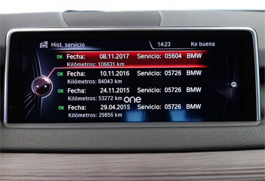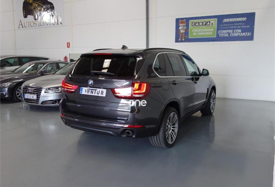 BMW X5, Diesel, año 2014, 124800 kilómetros, color Gris / Plata metalizado, precio 35500€. Driving Assistant Plus,Asistente de aparcamiento,Cuadro de instrumentos multifuncional,Paquete de chasis adaptivo Comfort,Pintura metalizada (excepto Rubinschwarz metalizado y Pyritbraun metalizado),Neumáticos con funcionamiento en caso de avería,Cambio automático deportivo,Luces autoadaptables,Telefonía de confort con conexión ampliada para smartphone,Servicios ConnectedDrive,Dispositivo de alarma,Dirección activa,Cuero 'Dakota' Canberrabeige/Canberrabeige,Asientos de confort delanteros, con reglaje eléctrico,Sintonizador DAB,Preparación para Internet,Sistema de navegación Professional,Calefacción de los asientos delanteros,Paquete Confort,Paquete de servicios ConnectedDrive,Revestimiento de madera noble de roble americano,20'', llantas de aleación ligera M de radios dobles (estilo 469 M) con neumáticos de diferentes dimensiones,Chasis M adaptivo. El coche (Paquete M Xdrive) esta en perfecto estado.Tiene 12 MESES DE GARANTIA , libro de revisiones al dia,km garantizados por escrito y certificados.Climatizador bizonal,cambio automático deportivos,navegador,asientos electricos de cuero marron,asientos calefactables ,faros bi-xenón,control de velocidad,control de carril y frontal,elevalunas eléctricos,espejos eléctricos ,esp,radio cd con entrada auxiliar ,volante multinacional con levas,ordenador de a bordo,apoyabrazo,bluetooth,sensores de aparcamiento,portón trasero electrico. Mejor Verlo.Se acepta prueba mecanica .ACEPTAMOS VEHICULO COMO PARTE DE PAGO. TODOS NUESTROS VEHICULOS SE ENTREGAN TOTALMENTE REVISADOS Y KILOMETROS CERTIFICADOS..