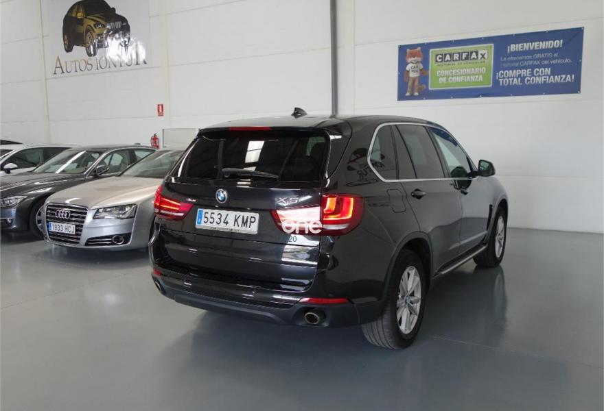 BMW X5, Diesel, año 2015, 148796 kilómetros, color Negro metalizado, precio 33900€. Paquete Confort,Faros antiniebla de LED,Asientos de confort en la parte trasera,Calefacción de los asientos delanteros,Soporte lumbar en los asientos delanteros,Molduras interiores Aluminium Hexagon,Preparación para Internet,Sintonizador DAB,Sistema de navegación Professional,Servicios ConnectedDrive,Luces autoadaptables,Faros LED autoadaptables,Dispositivo de alarma,Pintura metalizada (excepto Rubinschwarz metalizado y Pyritbraun metalizado),Paquete de chasis adaptivo Comfort. El coche Xdrive esta en perfecto estado.Tiene 12 MESES DE GARANTIA , libro de revisiones al dia,km garantizados por escrito y certificados.Climatizador bizonal,cambio automático,navegador,asientos electricos de cuero beige,asientos calefactables ,faros bi-xenón,control de velocidad,control de carril,elevalunas eléctricos,espejos eléctricos ,esp,radio cd con entrada auxiliar ,ordenador de a bordo,apoyabrazo,bluetooth,sensores de aparcamiento,portón trasero electrico. Mejor Verlo.Se acepta prueba mecanica .ACEPTAMOS VEHICULO COMO PARTE DE PAGO. TODOS NUESTROS VEHICULOS SE ENTREGAN TOTALMENTE REVISADOS Y KILOMETROS CERTIFICADOS.El coche es del 19/11/2014..