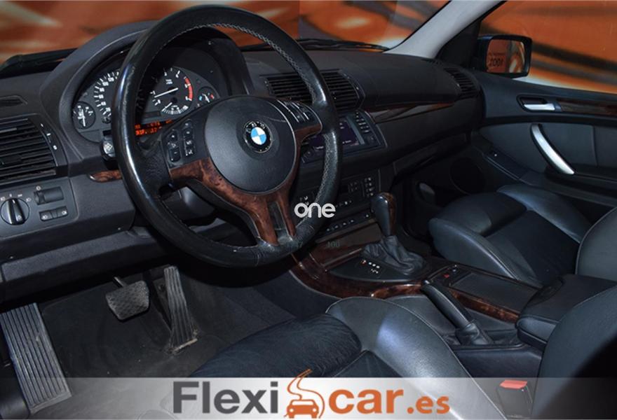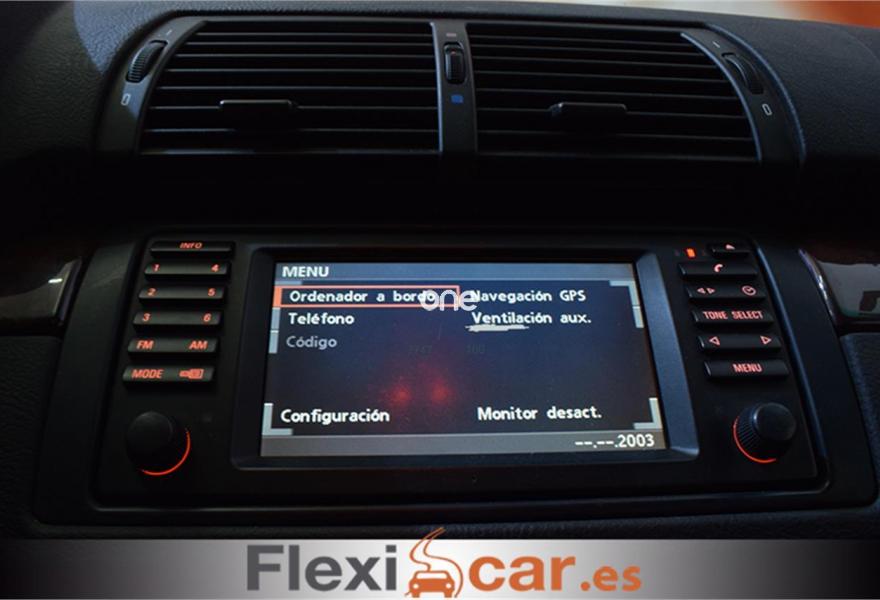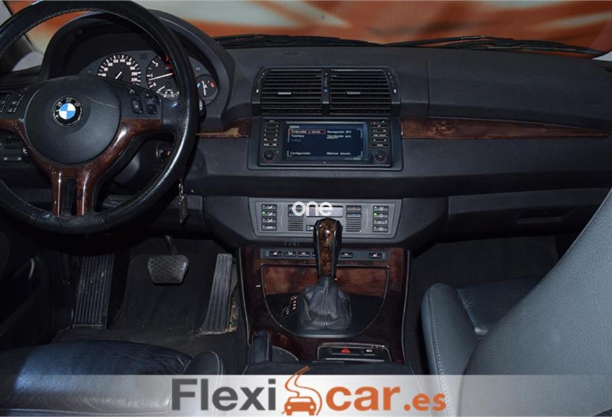 BMW X5, Diesel, año 2005, 208000 kilómetros, color Negro metalizado, precio 12490€. Alfombrillas de velours,Apoyabrazos delantero,Asientos deportivos delanteros 3.0d,Calefacción asientos delanteros,Paquete de fumadores,Soporte lumbar asientos delanteros,Navegación Professional y ordenador 3.0,Ordenador de a bordo alfanumérico,Asientos comfort regulac. eléctrica 3.0d,Preinstalación de intercambiador 6 CD,Sensor lluvia y accionam. aut. luz cruce,Llantas aleación radios en V (168) 3.0d,Pintura metalizada,Airbags laterales traseros,Control de distancia en aparcamiento. Vehículo muy bien cuidado, equipado con llantas de aleación, dirección asistida, TECHO SOLAR, luces antiniebla, cierre centralizado, NAVEGADOR, asientos ELECTRICOS Y CALEFACTABLES, volante multifunción, control de velocidad, ordenador de a bordo, PANTALLA TFT a color, TAPICERIA DE CUERO, manos libres, bluetooth, caja de cambio automático, elevalunas eléctricos...