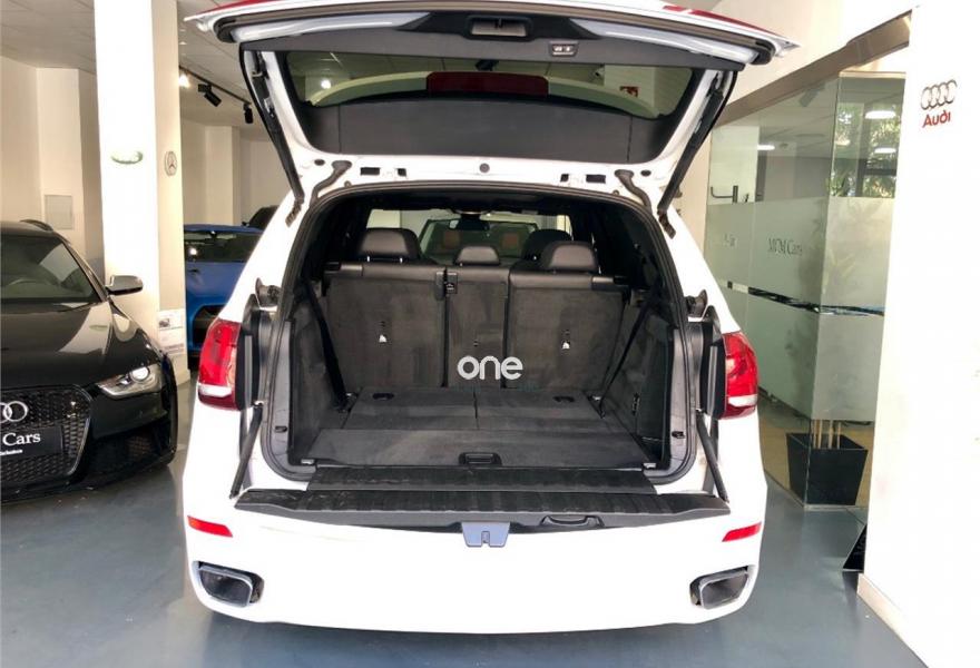 BMW X5, Diesel, año 2015, 94000 kilómetros, color Blanco metalizado, precio 49999€. Paquete de servicios ConnectedDrive,Paquete Visibilidad,Speed Limit Info,3ª fila de asientos,Faros antiniebla de LED,Cuero Dakota Schwarz/Schwarz,Calefacción de los asientos delanteros,Ventilación activa de los asientos delanteros,Sistema de navegación Professional,Sistema de sonido surround Harman Kardon,Cambio automático deportivo,Acceso confort,Advertencia de cambio de carril,Asientos de confort delanteros, con reglaje eléctrico,Asistente de luz de carretera,Cuero 'Dakota' Elfenbeinweib/Schwarz,Dirección activa,Paquete aerodinámico M,Paquete de compartimentos,Paquete deportivo M,Paquete de iluminación,Persiana solar mecánica en las ventanillas laterales traseras,Real Time Traffic Information,Red de separación del maletero,Remote Services,Servicios ConnectedDrive,Techo de cristal panorámico,Telefonía de confort con conexión ampliada para smartphone,Volante M de cuero,Mineralweiß (metalizado),20'', llantas de aleación ligera M de radios dobles (estilo 469 M) con neumáticos de diferentes dimensiones,BMW Head-Up Display,Chasis M adaptivo,Cuadro de instrumentos multifuncional,Asistente de aparcamiento,Cámara para marcha atrás,Control de crucero activo con función Stop&Go,Driving Assistant Plus. LIBRO MANTENIMIENTO COMPLETO