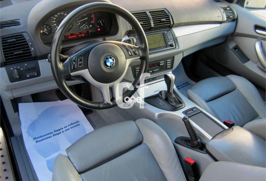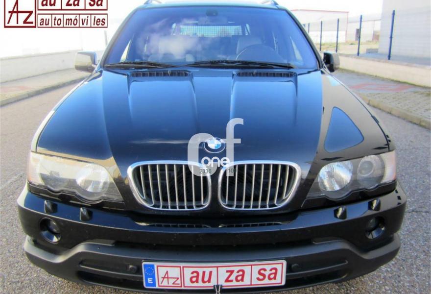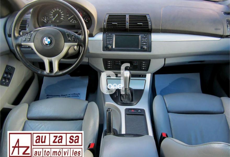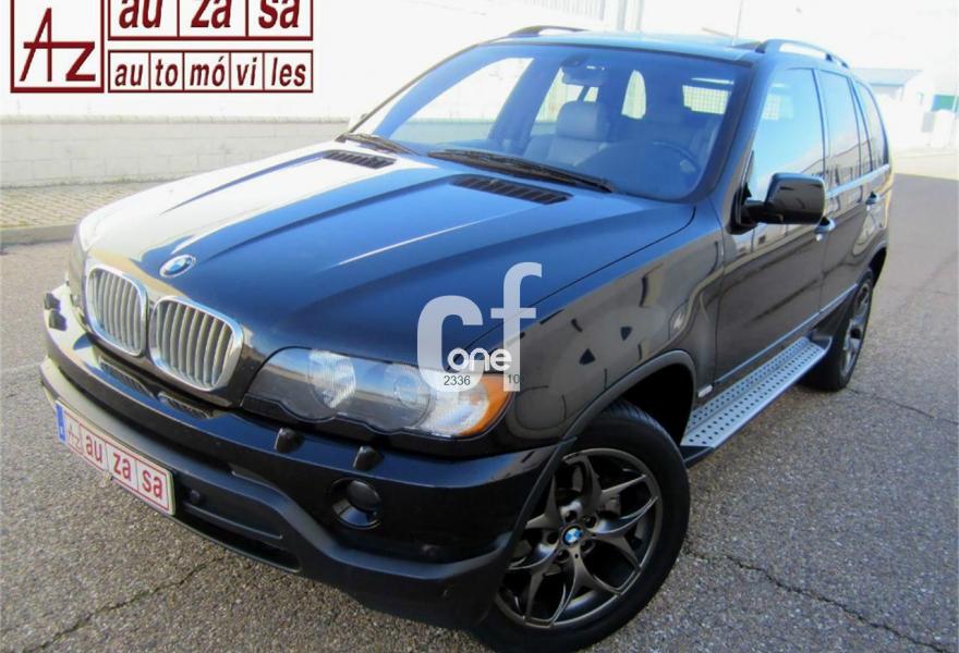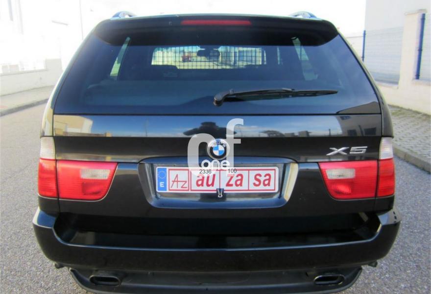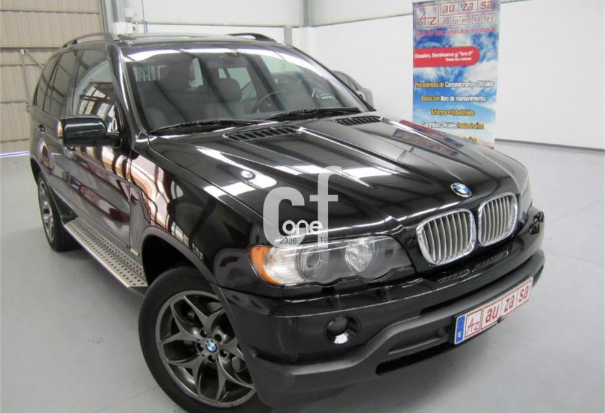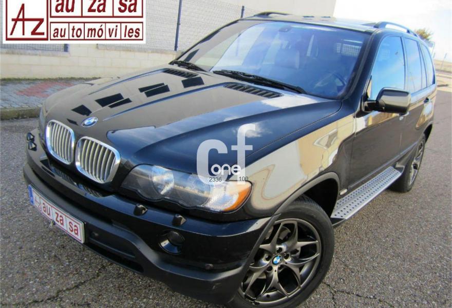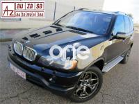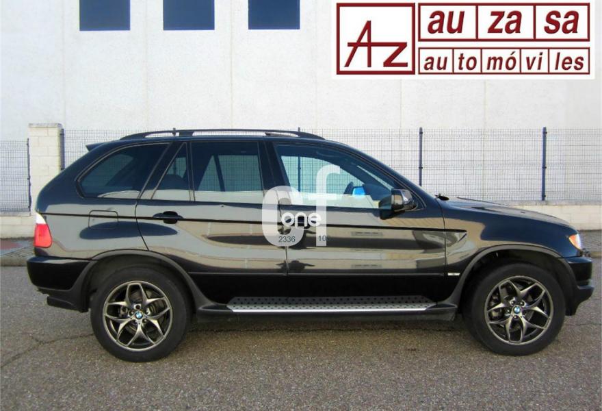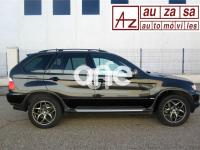 BMW X5, Diesel, año 2003, 154000 kilómetros, color Negro metalizado, precio 13900€. Alfombrillas de velours,Apoyabrazos delantero,Asientos deportivos delanteros 3.0d,Asientos 'Confort' reg. eléctrica 3.0d,Calefacción asientos delanteros,Bolsa para esquíes,Calefacción asientos traseros,Linea Titanio interior 3.0,Reglaje eléctrico de los asientos 3.0,Soporte lumbar asientos delanteros,Tapicería cuero Dakota 3.0,Intercambiador BMW de 6 CD,Monitor con TV y ordenador a bordo 3.0,Sintonizador de TV,Sistema de navegación y ordenador 3.0,Teléfono GSM inalámbrico 3.0,Aire acondicionado para la parte trasera,Dispositivo de alarma,Faros de Xenón,Franja verde en el parabrisas,Lavado de faros,Intermitentes blancos (Individual),Retrovisor interior anti-deslumbramiento,Retrovisores anti-deslumbramiento,Sensor de lluvia y conex. aut. luz cruce,Supresión del anagrama de modelo,Techo eléctrico corredizo de cristal,Confort climático para el parabrisas,Cristal de protección solar,Enganche de remolque con bola separable,Estribos de aluminio,Llantas aleación radios radiales (58),Manecillas de puertas color carrocería,Pintura metalizada,Paquete deportivo 3.0,Transmisión automática 3.0d,Control de distancia en aparcamiento. IMPECABLE ESTADO.