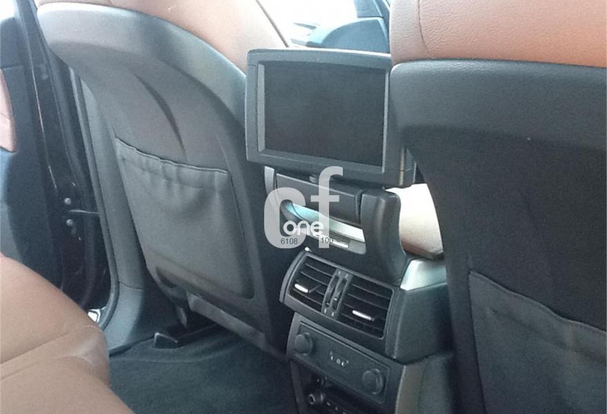 Negro zafiro metalizado, Cuero Nevada Cinnamon Brown, Volante deportivo de cuero airbag, Volante deportivo de cuero airbag, BMW LA Star rueda de radios 334, Barras de techo, Enganche de remolque, Techo panorámico eléctrico, Paquete de fumadores, Calefacción auxiliar / ventilación, Tercera fila de asientos, Sistema lavafaros, Park Distance Control (PDC), Sensor de lluvia, Luz de xenón, Clima, Control de crucero con func freno, Sistema de navegación Professional, Entrada de voz, Preparación p teléfono móvil w. Bluetooth, Sistema de altavoces HiFi, BMW TeleServices, TeleServices control, Sistema de DVD en la parte trasera, Interfaz USB / Audio, Acristalamiento de protección individual sol.