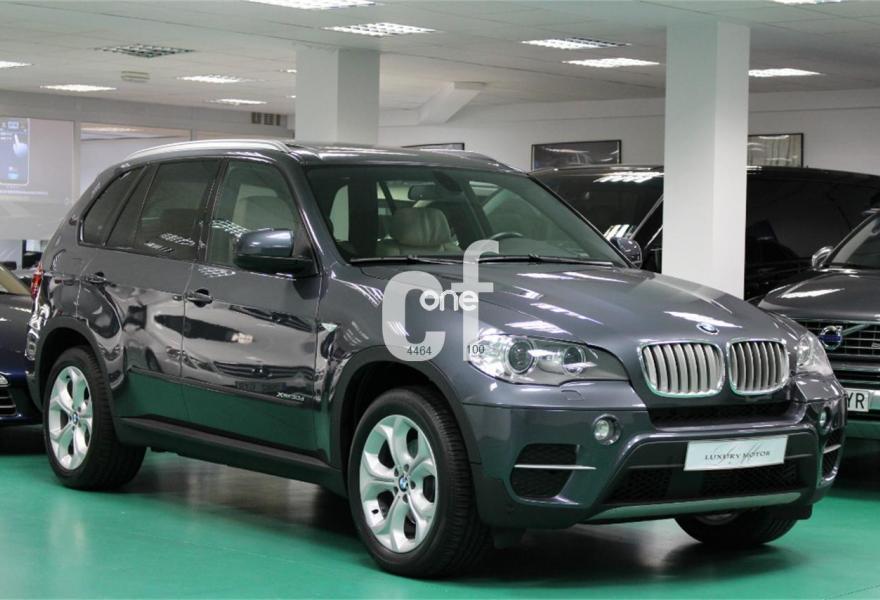 BMW X5, Diesel, año 2012, 65000 kilómetros, color Gris / Plata metalizado, precio 43900€. Paquete deportivo,Speed Limit Info,Alfombrillas de velours,Asientos deportivos para conductor y acompañante,Calefacción de los asientos delanteros,Cuero exclusivo 'Nappa' con contenido ampliado,Molduras interiores Aluminium con rectificado longitudinal fino,Soporte lumbar en los asientos delanteros,Conexión USB audio,Sistema de altavoces HiFi,Sistema de navegación Professional,Sistema HiFi Professional,Tomas de corriente adicionales de 12 V,3ª fila de asientos,Accionamiento automático del portón trasero,Asientos de confort delanteros, con reglaje eléctrico,BMW TeleServices,Calefacción auxiliar,Control por voz,Dirección activa,Faros bi-xenón para función de luz de cruce y de carretera,Lavado de faros,Luces autoadaptables,Paquete de compartimentos,Paquete de iluminación,Preparación para teléfono móvil con interfaz Bluetooth,Reglaje eléctrico de los asientos, con memoria en el del conductor,Retrovisor interior, con ajuste automático anti-deslumbramiento,Techo de cristal panorámico,Volante M de cuero,19", llantas de aleación ligera de radios en Y (estilo 335) con neumáticos de diferentes dimensiones,Carriles longitudinales para la baca BMW Individual Aluminium satinado,Confort climático para parabrisas,Enganche de remolque con rótula inclinable eléctricamente,Llantas de aleación ligera de radios en Y (estilo 214) con neumáticos de diferentes dimensiones,Pintura metalizada,Autonivelación con suspensión de aire,Suspensión deportiva,Cámara para marcha atrás con Top View,Control de distancia en aparcamiento (PDC),Triángulo de emergencia con equipo de primeros auxilios. "" BMW X5 X-DRIVE 30d SPORT PACKET -7 PLAZAS- 245cv "" VEHÍCULO NACIONAL. TODOS LOS MANTENIMIENTOS GUIADOS EN SERVICIO OFICIAL BMW. SU ESTADO TANTO INTERIOR COMO EXTERIOR ES IGUAL A NUEVO. 12 MESES DE GARANTIA OFICIAL BMW. PRECIO NUEVO 81.000,00€ Equipamiento: Pintura Metalizada, Faros Bi-xenon con Lavafaros, Asientos Eléctricos con Memoria, Techo Panorámico, Sensores de Aparcamiento, Asientos Confort con Regulación Lumbar y de Contorno, Sensor de Lluvia y Luces, Sistema de Navegación Profesional, Autonivelación Eje Trasero, 7 Plazas, Volante Deportivo "M", Manos Libres Bluetooth, Comandos por Voz, Cámaras Periféricas TOP VIEW, Retrovisores Eléctricos Abatibles, Asientos Calefactados, Control de Velocidad, Cámara Trasera, Bola de Remolque Eléctrica, Entradas Auxiliares de Audio, Calefacción Auxiliar, Suspensión Deportiva, Cubre-equipaje, Neumático en Doble Medida, Inserciones en Aluminio Cepillado, Portón Maletero Eléctrico, Faros LED, Red Separación Maletero, Control de Descenso, Etc..