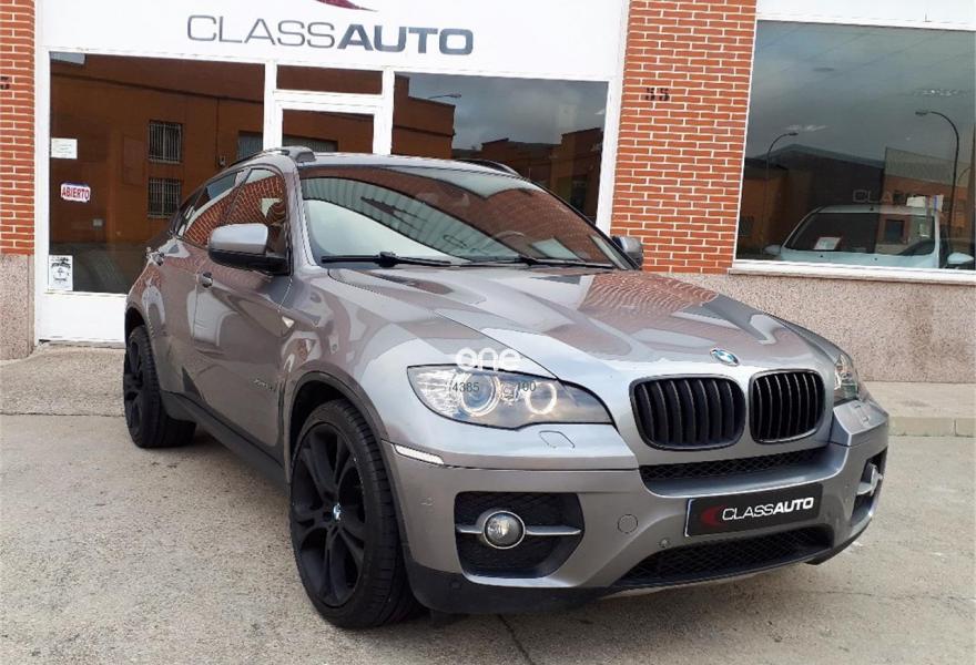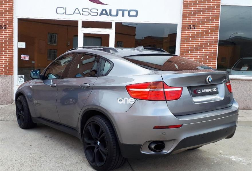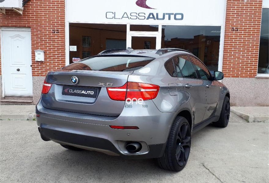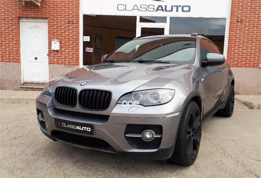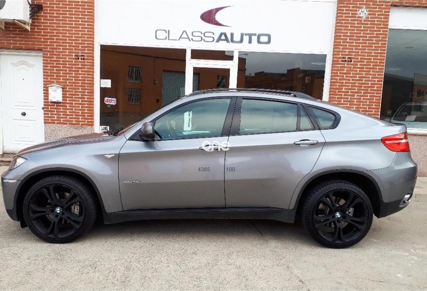 BMW X6, Diesel, año 2009, 186000 kilómetros, color Gris / Plata metalizado, precio 25600€. Asientos deportivos para conductor y acompañante,Asientos de confort delanteros, con reglaje eléctrico,Calefacción de los asientos delanteros,Cuero 'Nevada' Schwarz,Molduras interiores de aluminio Flywheel schwarz,Reglaje eléctrico de los asientos, con memoria en el del conductor OK,Soporte lumbar en los asientos delanteros,Ventilación activa de los asientos delanteros,Intercambiador de 6 CD,Sistema de navegación Professional,Sistema DVD en la parte trasera,Dispositivo de alarma,Luces autoadaptables,Paquete Deportivo,Persiana solar en las ventanillas laterales traseras, mecánica,Retrovisor interior, con ajuste automático anti-deslumbramiento,Techo de cristal, eléctrico,Espejos retrovisores interior y exteriores con ajuste automático anti-deslumbramiento,Pintura metalizada,Spacegrau (metalizado),Head-Up display. BMW X6 XDRIVE 35D. 286 CV. AUTOMATICO.