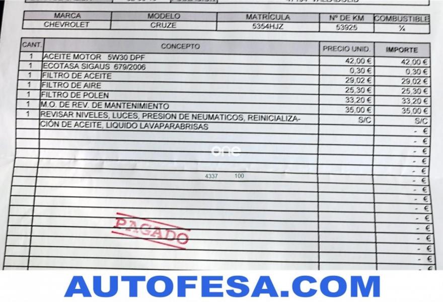 CHEVROLET Cruze, Diesel, año 2012, 72500 kilómetros, color Azul , precio 9200€. Referencia del anuncio:21435