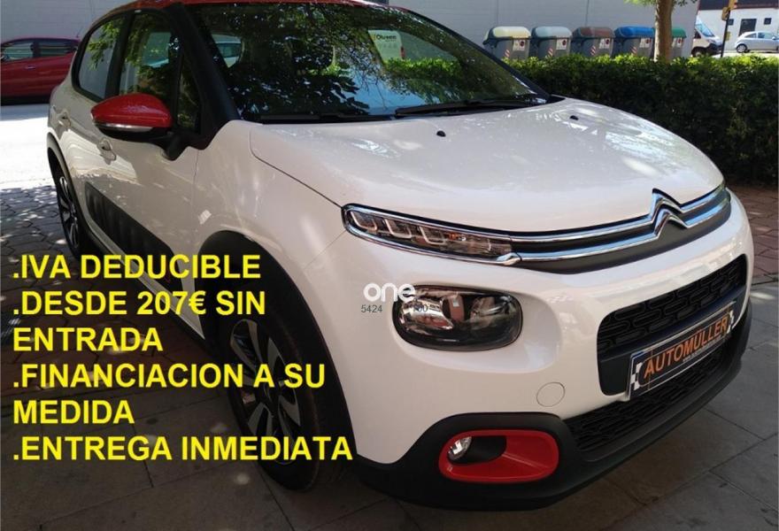 C3, GASOLINA 82 cv. Pure Tech Feel Climatizador, llantas bi-tono, interior deportivo, control de velocidad, ordenador de abordo , aviso de cambio involuntario de carril, control de funciones multimedia por voz, volante multifunción, teléfono por bluetooth, retrovisores abatibles eléctricos, navegador GPS integrado, pantalla táctil, conectores multimedia, luz de marcha diurna de led, garantía oficial Citroën, Ultimas unidades con muy pocos kilómetros en gasolina 82cv en versiones Feel o Shine, precio contado 13.600€ o financiado sin entrada a 207€ por mes.