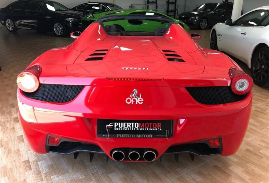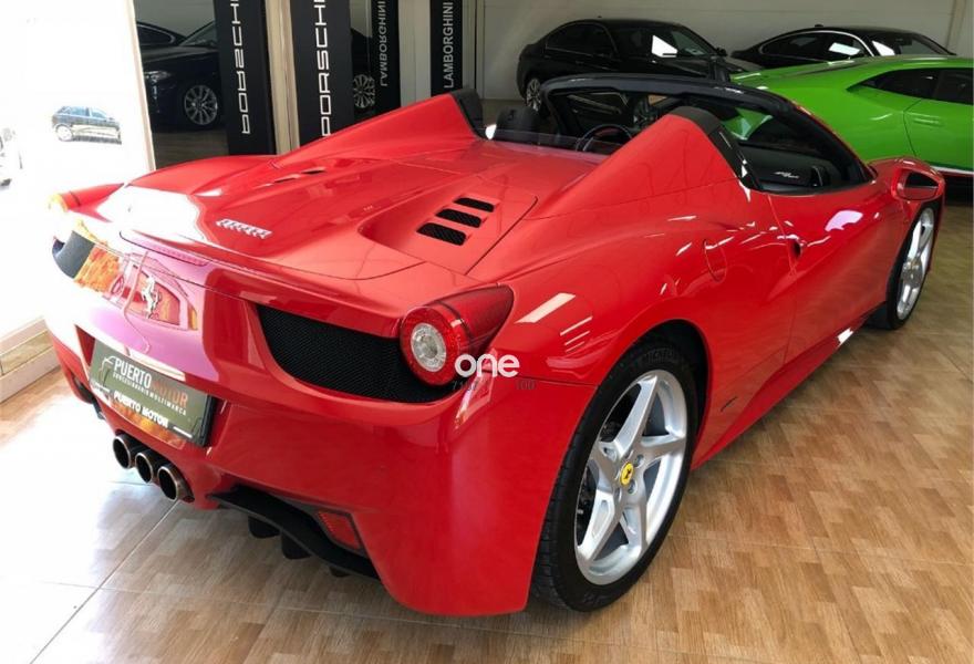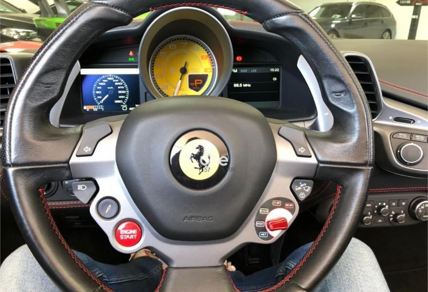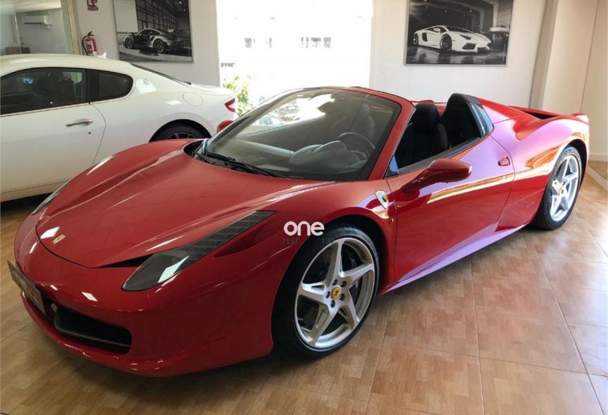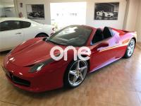 FERRARI 458, Gasolina, año 2012, 40000 kilómetros, color Rojo , precio 169990€. FERRARI 458 SPIDER 575CV, NAVEGADOR, PARKTRONIC, SCUDETOS LATERALES, BLUETOTH, BIXENON, PIEL NEGRA CON COSTURAS ROJAS, CAVALLINO EN ASIENTOS, RELOJ AMARILLO Y MUCHOS MAS EXTRAS.