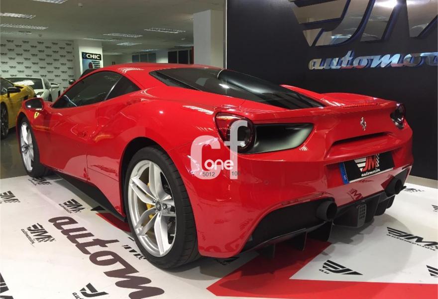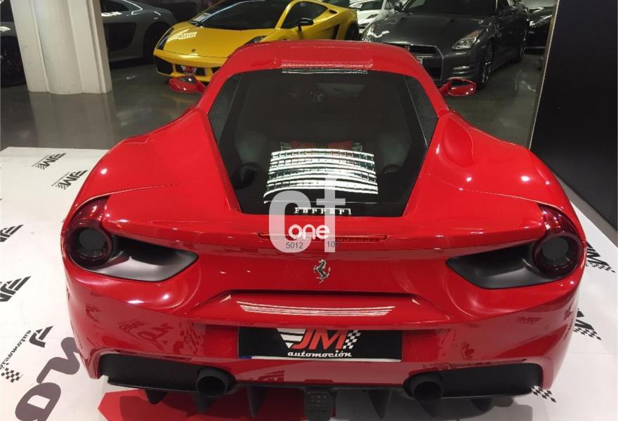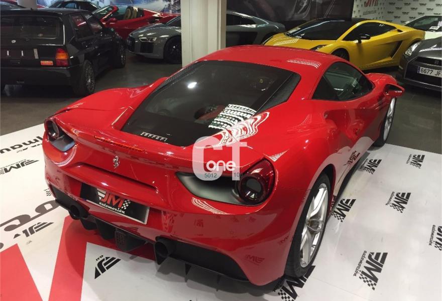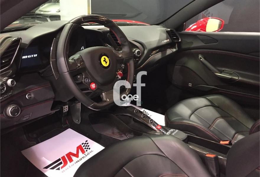 FERRARI 488, Gasolina, año 2016, 15000 kilómetros, color Rojo , precio 228900€. Parte superior del tunnel en fibra de carbono,Recubrimiento de carbono para el tunel central,Sistema de navegación por satélite,Rear camera parking,Parking sensor traseros y delanteros. VEHICULO NACIONAL DE FEBRERO DE 2016