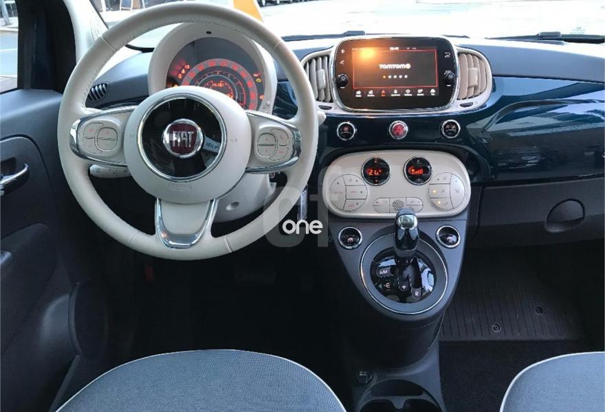 FIAT 500, Gasolina, año 2017, 8000 kilómetros, color Azul metalizado, precio 11900€. Reestreno. Vehiculo con garantia oficial de fabrica. Nuevo modelo con pantalla tactic TOMTOM. Automatico, Techo solar, Clima, Llanta aluminio. Posibilidad de financiacion. Se entrega con cambio de nombre..