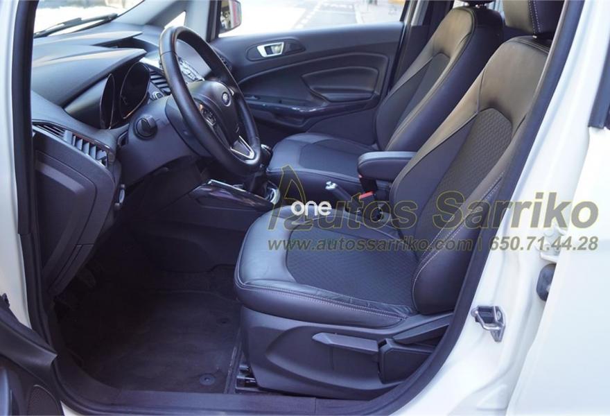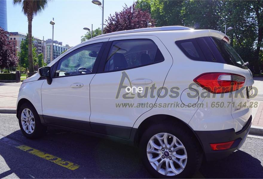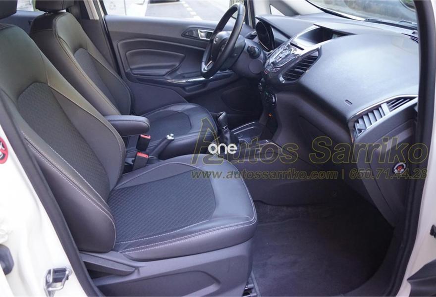 FORD EcoSport, Gasolina, año 2016, 48000 kilómetros, color Blanco , precio 12500€. Cuero parcial negro,FordProtect Life 5 años/100.000 km,Sensor de parking trasero. S.U.V. Impecable, procedente de particular, único propietario. Cuenta con garantía oficial Ford hasta el 19/06/2021 con los mantenimientos integrados.Última revisión correspondiente efectuada en servicio oficial a los 47.577 kilómetros.Se certifica kilometraje y que no ha sufrido golpe estructural.ASIENTOS MIXTOS CUERO+CONTROL DE VELOCIDAD+SENSORES DE APARCAMIENTO TRASEROS+ACCESO Y ARRANQUE SIN LLAVE+CLIMA+LLANTAS 16"+BLUDETOOTH+++Se financia el 100% de la operación a unas condiciones inmejorables, consúltenos sin compromiso.Precio vinculado a financiación ( Importe Mínimo a financiar 8.000 euros. Precio sin financiación 13.000 euros ).Se recoge vehículo como parte de pago.La documentación se efectúa en el día con un coste de 97 euros.Todos nuestra vehículos pasan por una exhaustiva revisión de 100 puntos.AUTOS SARRIKO, 30 años liderando el sector en Vizcaya..