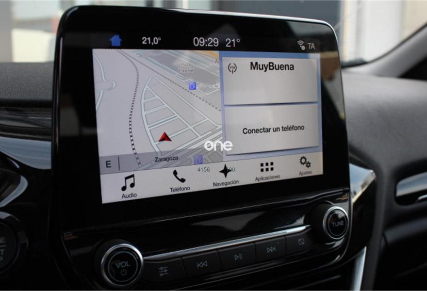 Pantalla frontal táctil con navegador Original Ford, tapicería de cuero parcial negro, climatizador digital Bizona automático, volante multifuncion, ordenador de abordo, control de crucero, etc..