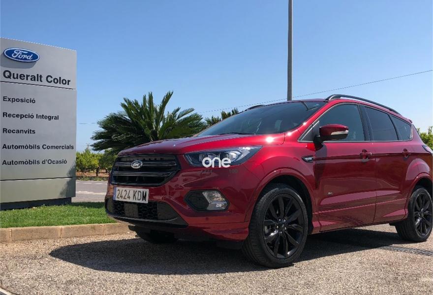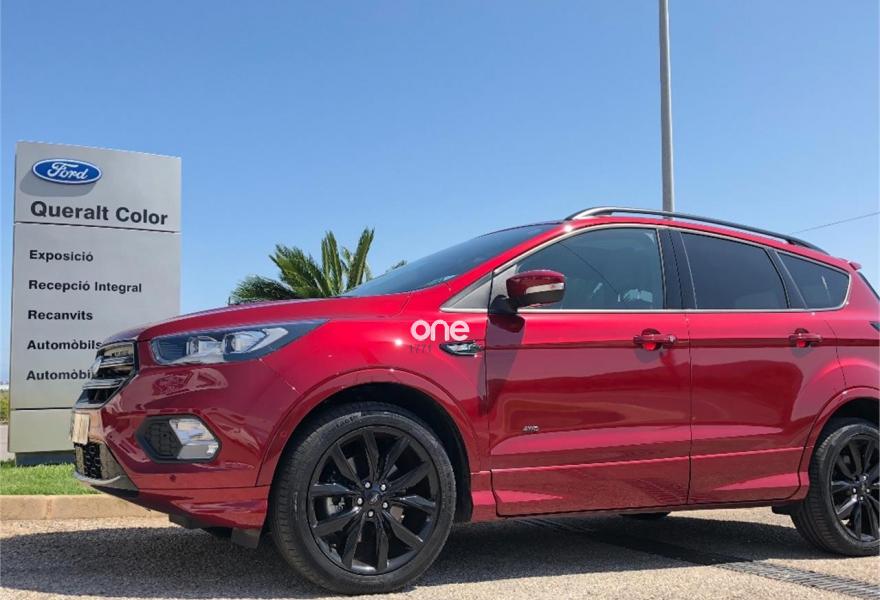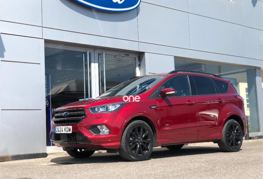 FORD Kuga, Diesel, año 2017, 26490 kilómetros, color Granate , precio 29280€. Rojo Rubí (metalizada Plus),Control de crucero adaptativo inteligente (ACC),Ford Protect Life 7 años/100.000 km,Cámara de visión trasera,Paquete ST-Line,Pack Tech,Llantas de aleación de 19",Techo panorámico Open-air,Sistema Sonido Premium Sony Pantalla TFT de 8"+10 altavoces alto rendimiento+Navegador+SYNC3+Cámara visión trasera,Portón manos libres,Paquete Familiar,Paquete Winter,Luz interior Ford Ambient+,Ajuste eléctrico en asiento de conductor (cuero parcial con alcántara). FORD KUGA 2.0 TDCI 180CV 4x4 ST-LINE POWERSHIFT