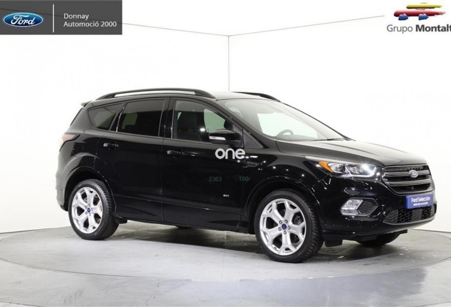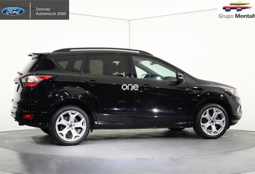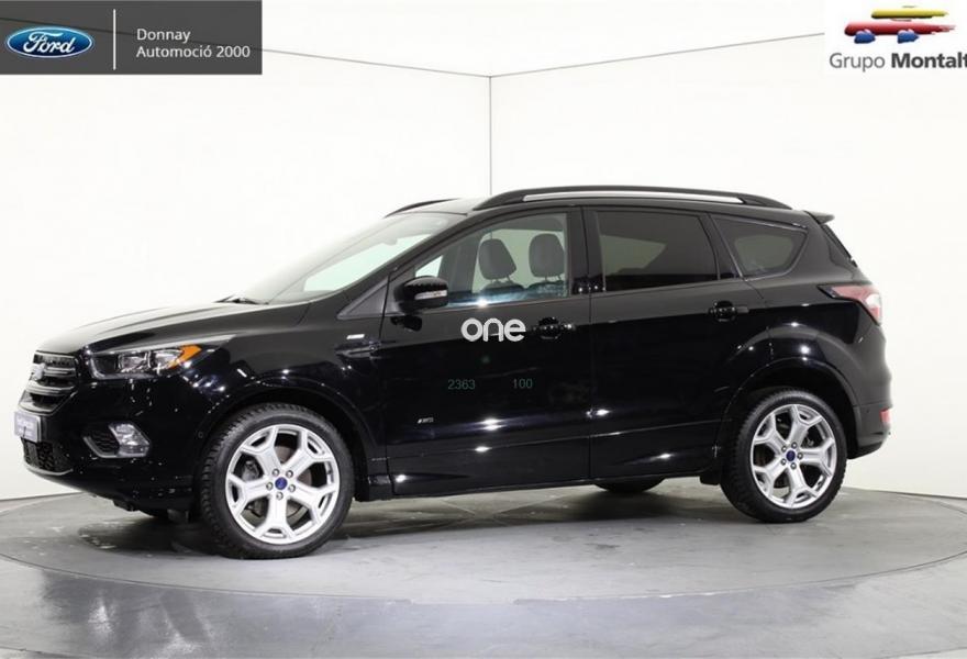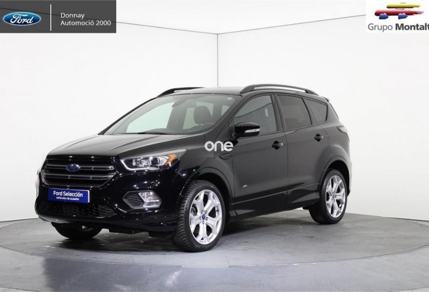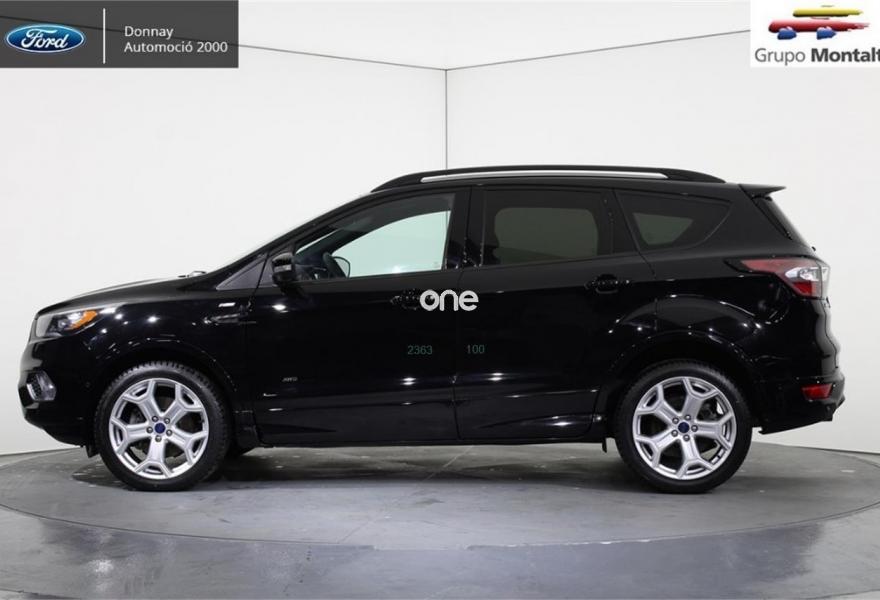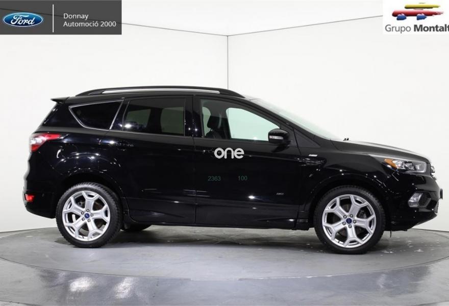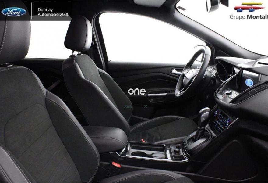 FORD Kuga, Diesel, año 2016, 24500 kilómetros, color Negro , precio 25500€. Navegador Sony con pantalla TFT 8" + 9 altavoces + SYNC3 + USB + Cámara visión trasera,Llantas de aleación de 19",Portón manos libres,Ajuste eléctrico en asiento de conductor (cuero parcial con alcántara),Rueda de repuesto mini,Paquete fumador,Paquete Winter. FORD Kuga ST-LINE 2.0 TDCI 4X4 PowerShift (Automático)