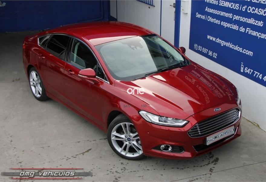 FORD Mondeo, Diesel, año 2016, 40000 kilómetros, color Rojo (Rojo Rubí) metalizado, precio 21500€. Paquete Nav. TItanium,Paquete Cuero parcial,Navegador 8" TFT SD táctil con SYNC 2, radio SONY,Apertura sin llave Ford KeyFree,Cinturones de seguridad traseros inflables,Faros LED Dinámicos,Kit Exterior Deportivo,Paquete Aerodinámico Individual 5P,Paquete Ivierno,Parabrisas calefactable,Cristales privacidad,Llantas de aleación de 19",Pintura Especial Rojo Rubí,Pintura Metalizada,Cámara de visión trasera,Sistema de aparcamiento asistido. Cuota de financiación calculada a 10 años y sin entrada