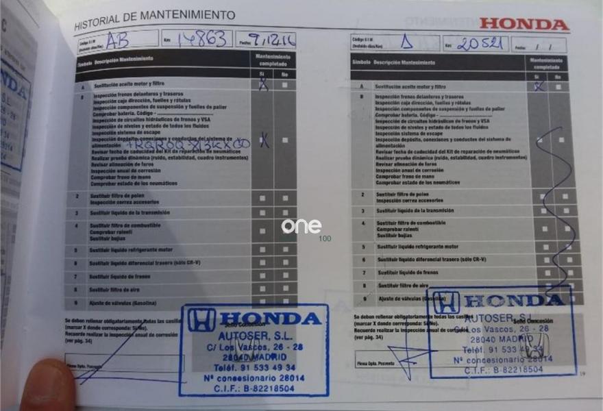 Extensión de Garantia HONDA hasta 01/2021 y certificado de kms por escrito.
