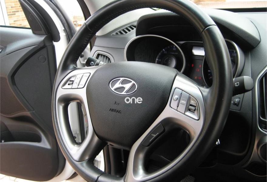HYUNDAI ix35, Diesel, año 2014, 74000 kilómetros, color Blanco , precio 15890€. Tapicería Tela/Cuero sintético Negro,Creamy White (sólido). AUTOMOVILES SAN JUAN.