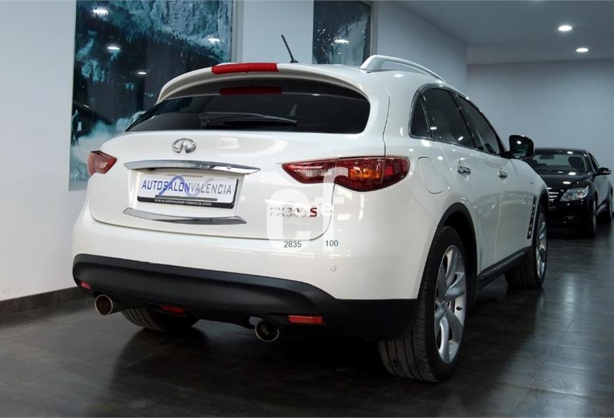 INFINITI FX, Diesel, año 2012, 59000 kilómetros, color Blanco , precio 36900€. INFINITI FX 3.0 V6 FX30d S PREMIUM. VEHICULO NACIONAL. UNICO PROPIETARIO. LIBRO DE MANTENIMIENTO EN SERVICIO OFICIAL. SOLO 59.000 KM. MODELO 2012 MATRICULADO EN 10/2011. BLANCO PERLADO CON INTERIOR EN CUERO A ROMBOS BEIGE. BIXENON. TELEFONO. NAVEGACION. TECHO SOLAR. SENSOR DE LUZ Y LLUVIA. PORTON ELECTRICO TRASERO. CAMARA TRASERA Y DELANTERA CON FUNCION 360º. LEVAS TRAS EL VOLANTE. VELOCIDAD DE CRUCERO. CLIMATIZADOR. ASIENTOS VENTILADOS Y CALEFACTADOS. LLANTAS DE ALEACION LIGERA EN 20?. ETC?.
