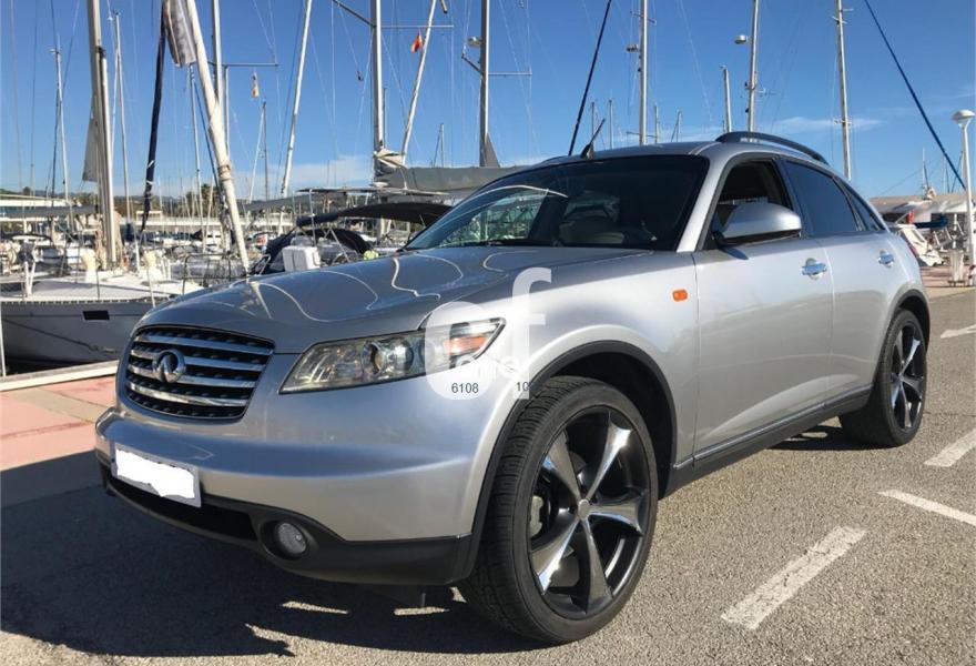 INFINITI FX, Gasolina, año 2003, 135000 kilómetros, color Gris / Plata metalizado, precio 8990€. Equipado con: Asientos de piel calefactable, volante multifunción con manos libres, Sensor de luces y lluvia, Sonido Bose, techo solar, Llanta 21 , Xenón, retrovisores plegables, asientos con función memoria, control de velocidad, reposabrazos. . . Excelente estado.