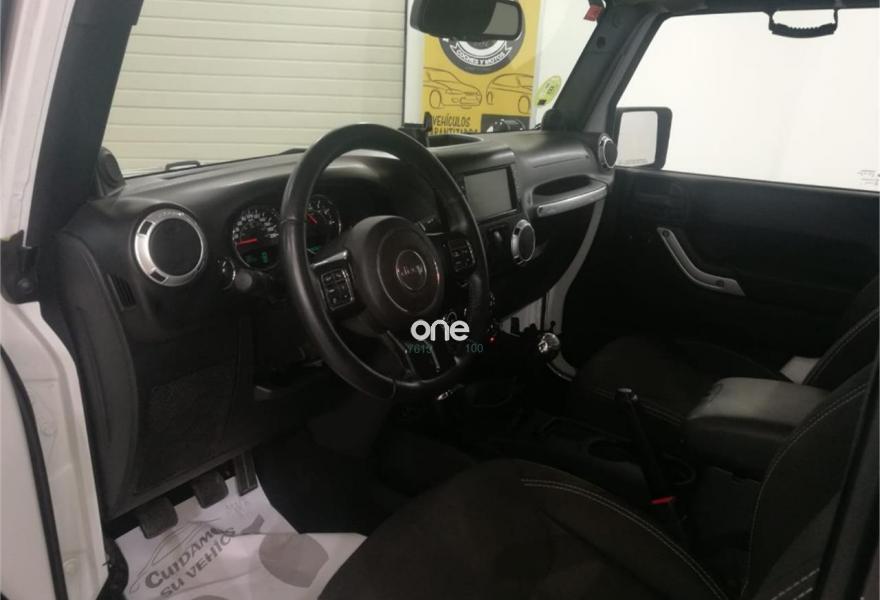 JEEP Wrangler, Diesel, año 2014, 98000 kilómetros, color Blanco , precio 27900€. Tapicería de tela Negra,Blanco Brillante (sólido). Jeep Wrangler Sahara 4 plazas. Unidad disponible en tienda para entrega inmediata, versión equipada con llantas en 18", neumáticos nuevos, aire acondicionado, descapotable, volante multifunción, encendido de luces automático, start/stop, sensor de lluvia y luces, control de velocidad, reductora, equipo de música con subwoofer, barra y focos de led, radio CD-MP3 con pantalla grande, totalmente revisado. Mejor ver y probar.
