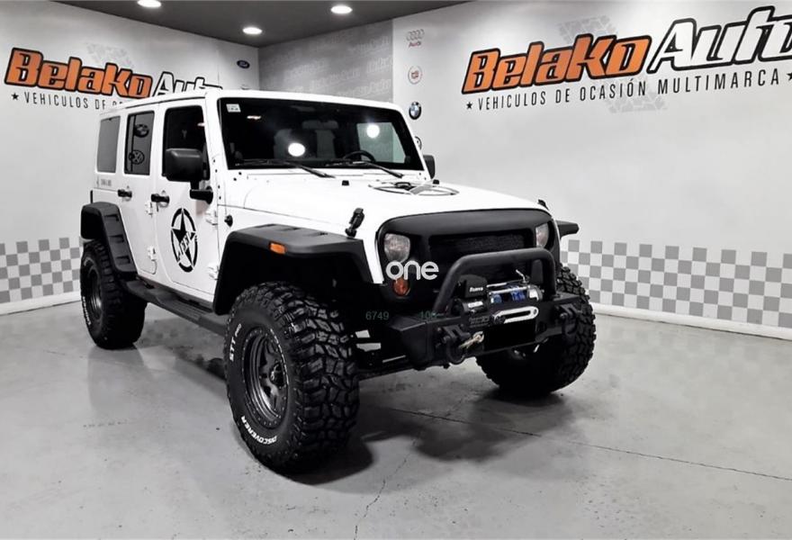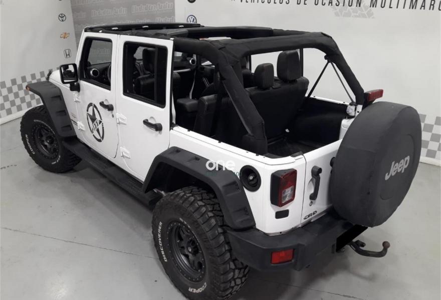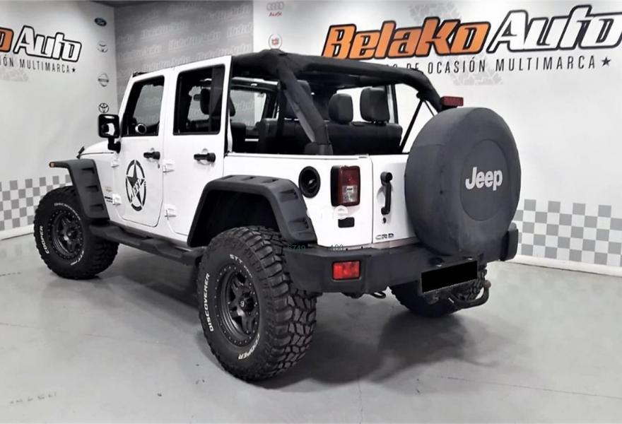 JEEP Wrangler, Diesel, año 2012, 50796 kilómetros, color Blanco metalizado, precio 39990€. JEEP WRANGLER SAHARA, en perfectas condiciones muy cuidado, muy pocos 4 puertas como este y prácticamente exclusivo en el mercado es un 4x4 equipado con Abs, airbags, aire acondicionado, apoya brazos central, asiento conductor ajustable en altura, bola de remolque, bluetooth, radio- cd, cierre centralizado, control crucero, dirección asistida, elevalunas y espejos eléctricos, faros antiniebla, gancho de remolque, indicador de temperatura exterior, asientos de cuero - calefactables, anclajes Isofix, llantas de aleación 17", rueda 35, regulador de velocidad, lunas tintadas, mandos en el volante, Navegador, ordenador de abordo, sensor de lluvia y de luz, Wintxi, Aletines, FULL Extras - homologados en ficha...