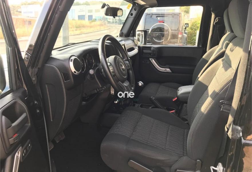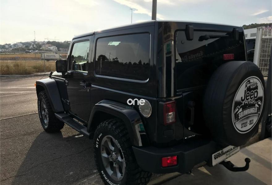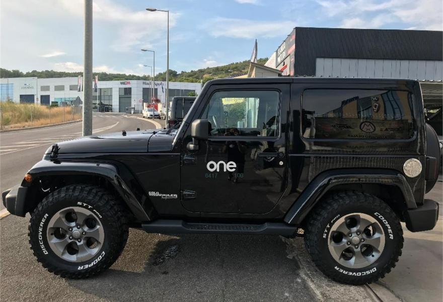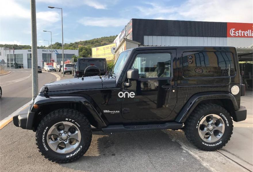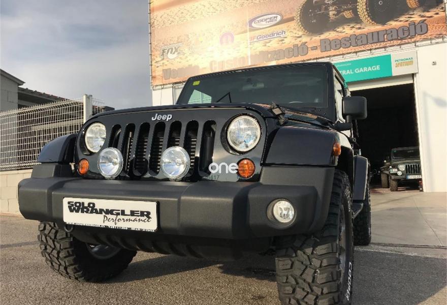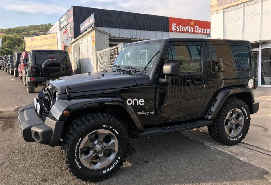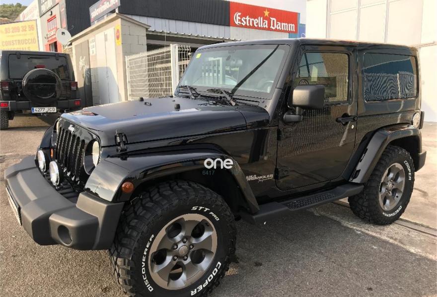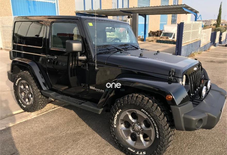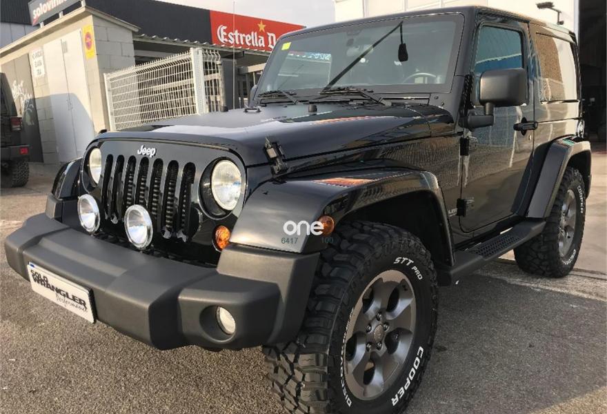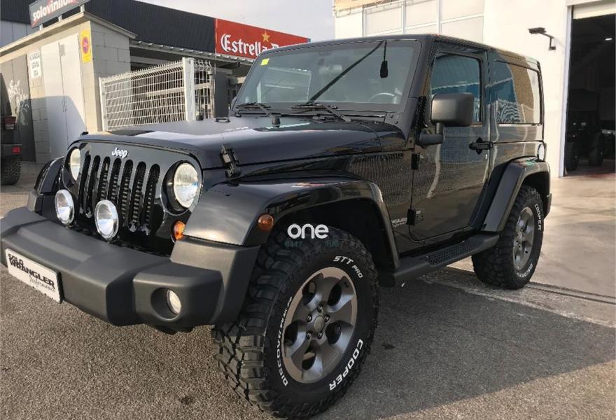 JEEP Wrangler, Diesel, año 2014, 50000 kilómetros, color Negro metalizado, precio 28900€. Wrangler JK 2.8 CRD Sahara BigFoot.Color blanco brillante con Capota dura en color carroceria e interior en negro.Neumaticos nuevos Cooper STT 305/60/18