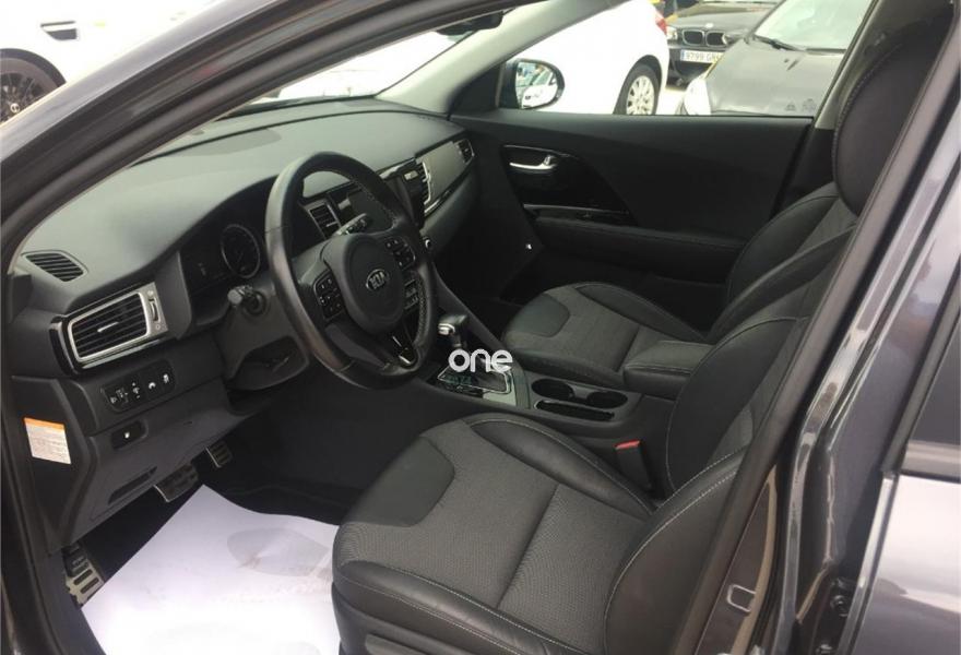 KIA Niro, Eléctrico / Híbrido, año 2017, 29000 kilómetros, color Gris / Plata metalizado, precio 21000€. Tela + Piel sintética Negra,Platinum Graphite (metalizado). Vehiculo en perfecto estado. Dirección asistida con volante multifunción en cuero, control velocidad, cierre centralizado, elevalunas electricos, retrovisores electricos, climatizador, ordenador de a bordo, radio, aux, usb, bluetooth, navegador, cámara trasera, sensor parking, sensor cambio de carril, llantas aleacion, tapizado tela-cuero, ABS, airbags, control tracción, etc. Garantia oficial. Posibilidad de financiar una parte o total. Venga a verlo sin compromiso..