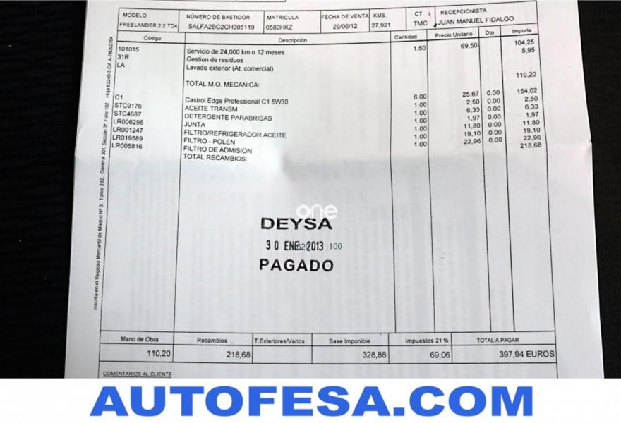 LAND-ROVER Freelander, Diesel, año 2012, 197000 kilómetros, color Blanco , precio 11650€. Referencia del anuncio:22659