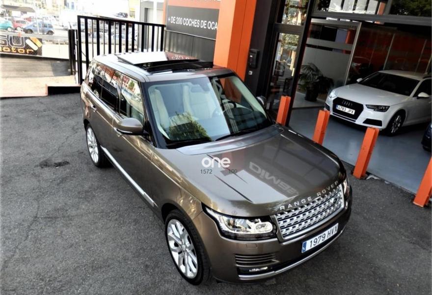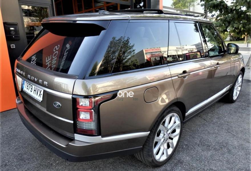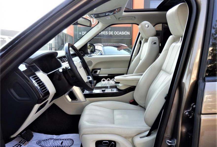LAND-ROVER Range Rover, Diesel, año 2014, 95000 kilómetros, color Marrón metalizado, precio 67490€. Asistente de aparcamiento en línea (Parallel Parking),Asientos Piel Oxford Style 13 - Función masaje en asientos delanteros,Asientos Piel Oxford Style 15 - Asientos traseros climatizados con 4 modos de ajuste lumbar y función masaje en asientos delanteros,Dual view (incl. 1 juego de auriculares),Meridian Surround Sound Audio System (825w),Climatizador 4 zonas (conductor y pasajeros con una salida auxiliar trasera),Detector anticolisión para la marcha atrás, monitorización de angulo muerto y sensor aproximación vehículo,Faros Delanteros Xenon adaptativos con línea LED,Guantera central refrigerada,Piel Perforada Ivory,Techo Panorámico deslizante (incl. Panel interior eléctrico) con cortinilla eléctrica,Volante calefactable en piel con inserciones madera,Cristales "Privacy",Pintura metálica,Asistente de aparcamiento en línea y batería Park Asist-Paralell Parking. IVA deducible YA incluido.