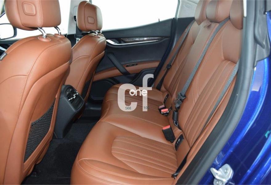 MASERATI Ghibli, Gasolina, año 2016, 14600 kilómetros, color Azul metalizado, precio 79950€. Acabados interiores en madera lacada Ebano,Asientos delanteros calefactados,Pack Executive Plus,Acabados interiores en madera de poro abierto Radica,Sistema de navegación,Tapizado del techo y pilares en Alcantara,Blu Emozione (mica),Llantas de aleación de 20" Urano,Pintura mica,Sensores de aparcamiento delanteros y traseros,Tapicería interior en cuero natural, cuero perforado en asientos,Asientos delanteros ventilados. Equipamiento Opcional: