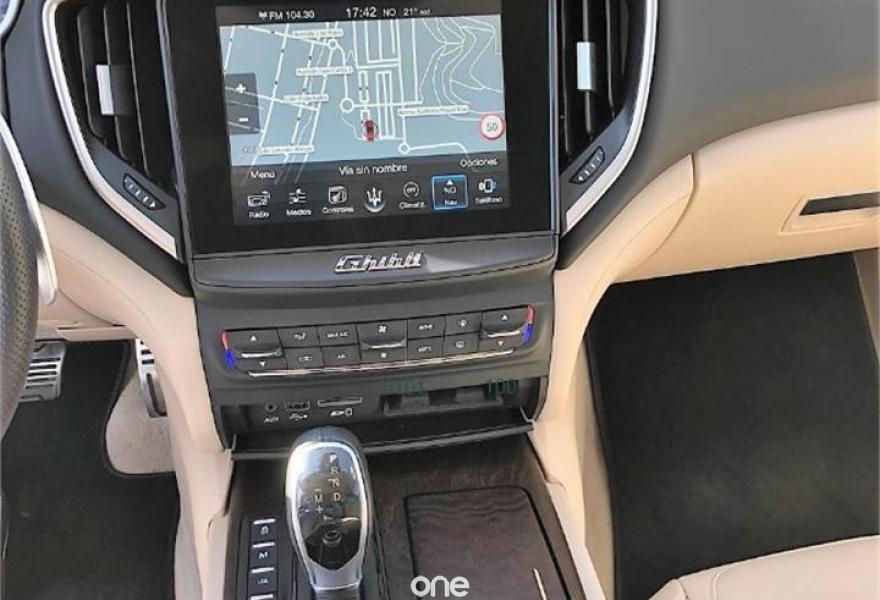 MASERATI Ghibli, Diesel, año 2017, 17831 kilómetros, color Negro (Nero Ribelle) metalizado, precio 78900€. Pack Premium,Pack Sport,Pack Business,Maletero eléctrico con kick sensor,Acabados interiores en madera de poro abierto Radica,Asientos delanteros ventilados,Pedales deportivos en acero inoxidable,Tapicería interior en cuero natural,Home Link,Sistema de sonido Harman Kardon Premium,Detector de alerta Blind Spot (ángulo muerto),Pedales con ajuste eléctrico,Pelle sabbia/sabbia (cielo sabbia),Pinzas de freno pintadas en rojo,Asientos delanteros calefactados,Asientos delanteros eléctricos de 8 vías, 2 memorias lado conductor,Asientos deportivos con 12 posiciones ajuste eléctrico con memoria,Sistema de navegación,Sistema de frenado deportivo Dual Cast,Sistema Easy Entry,Tapicería interior en cuero natural, cuero perforado en asientos,Techo solar eléctrico,Volante deportivo,Llantas de aleación GTS Antracite 20",Nero Ribelle (mica),Pintura mica,Retrovisores exteriores con atenuación automática,Levas de cambio Maserati active shifting en la columna de dirección,Cámara de visión trasera,Sensores de aparcamiento delanteros y traseros,Faros Bi-Xenon con iluminación dinámica y limpiadores. CONFIGURACIÓN ÚNICA!! VEHICULO NACIONAL!!