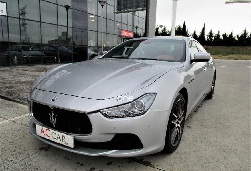 MASERATI Ghibli, Diesel, año 2014, 229000 kilómetros, color Gris / Plata metalizado, precio 30900€. Esta en perfecto estado. Tiene gps, cuero granate, asientos electricos, control de velocidad, sensores de aparcamiento, camara trasera, boton Sport, pantalla tactil, asientos calefactados. El mas barato de España.